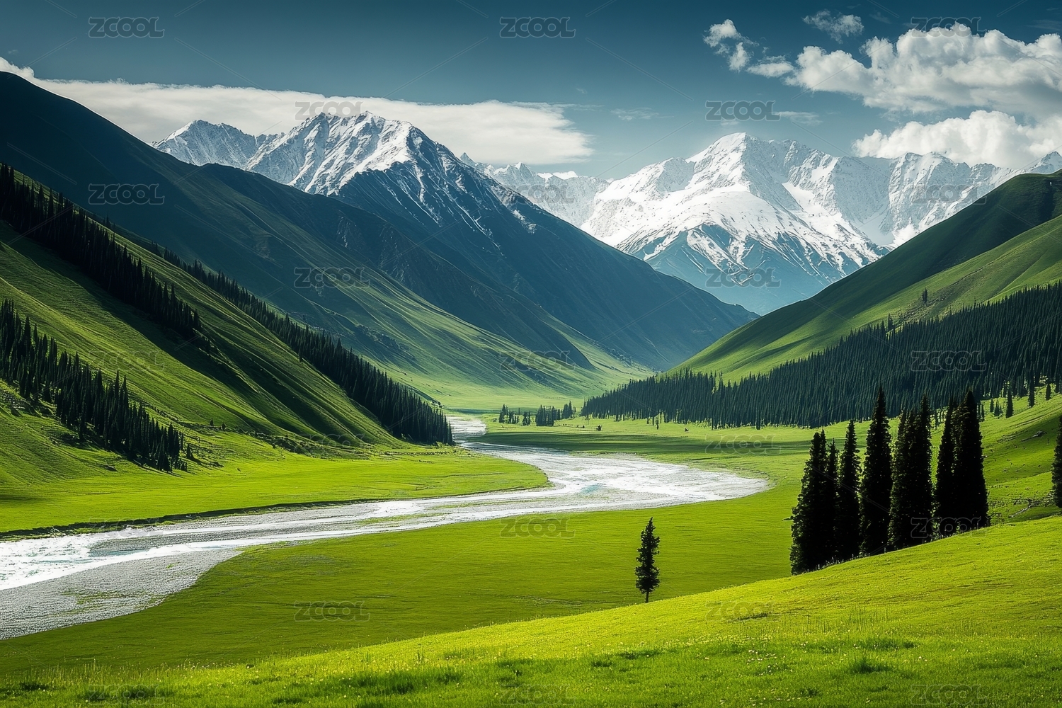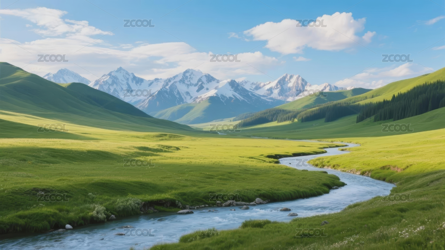 风景, 自然, 宁静, 田园, 蓝天, 白云, 溪流, 牧场, 清新, 河流