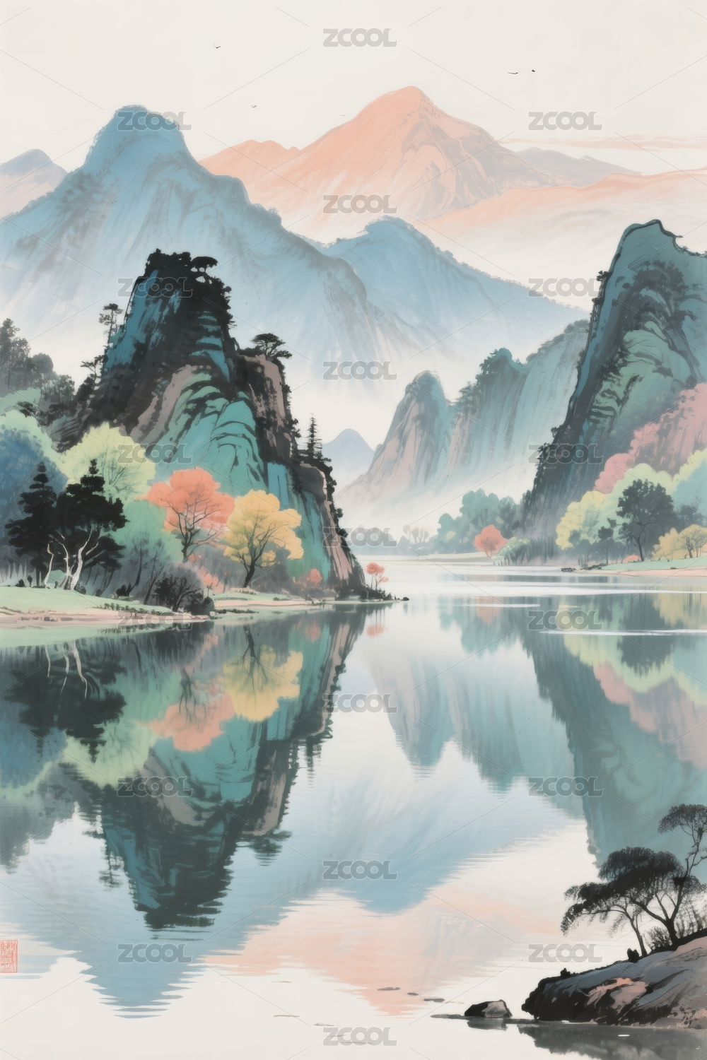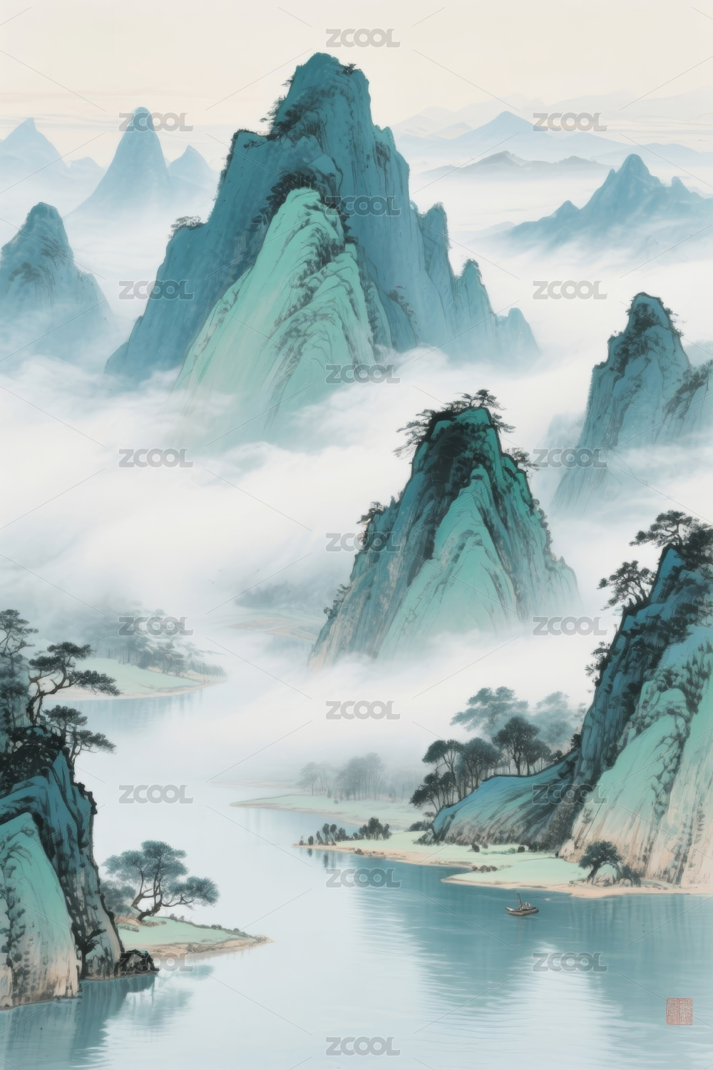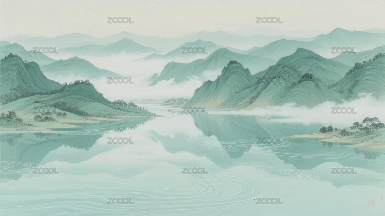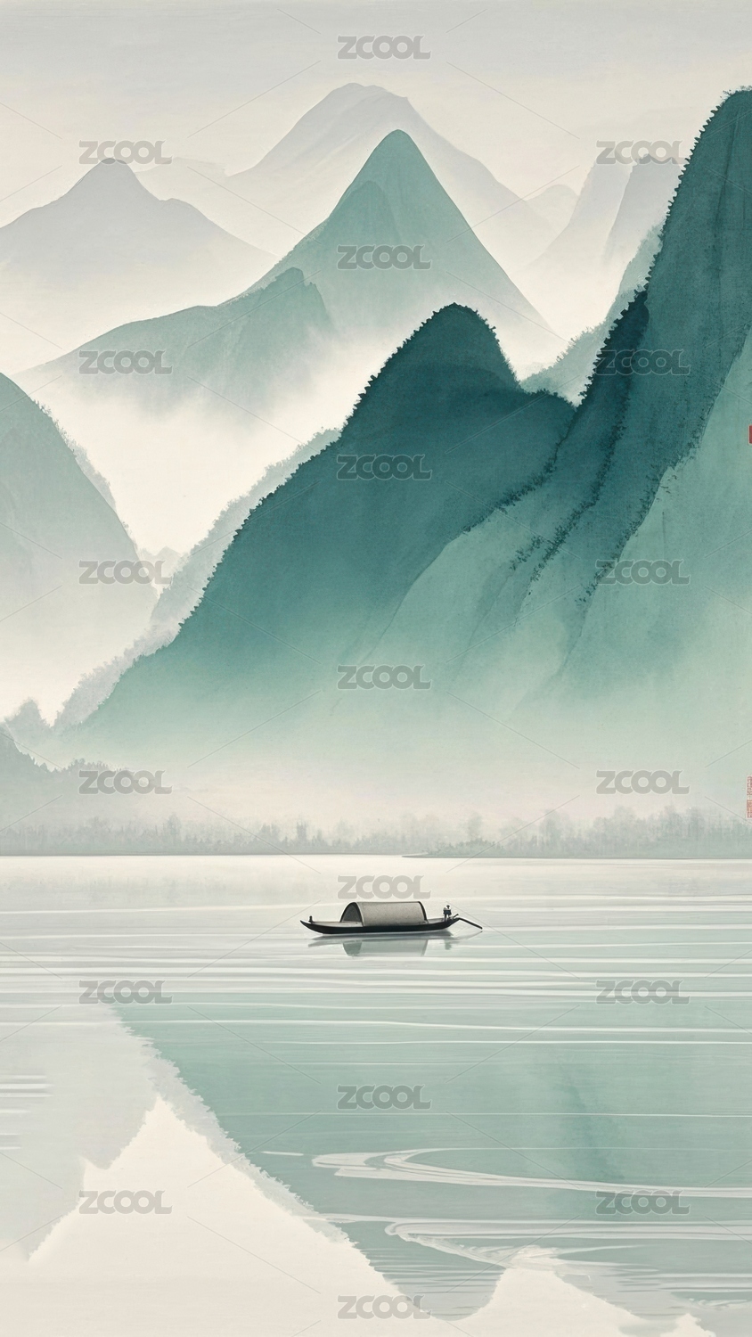 山, 水, 雾, 远山, 水墨, 淡雅, 自然, 风景, 清新, 幽静