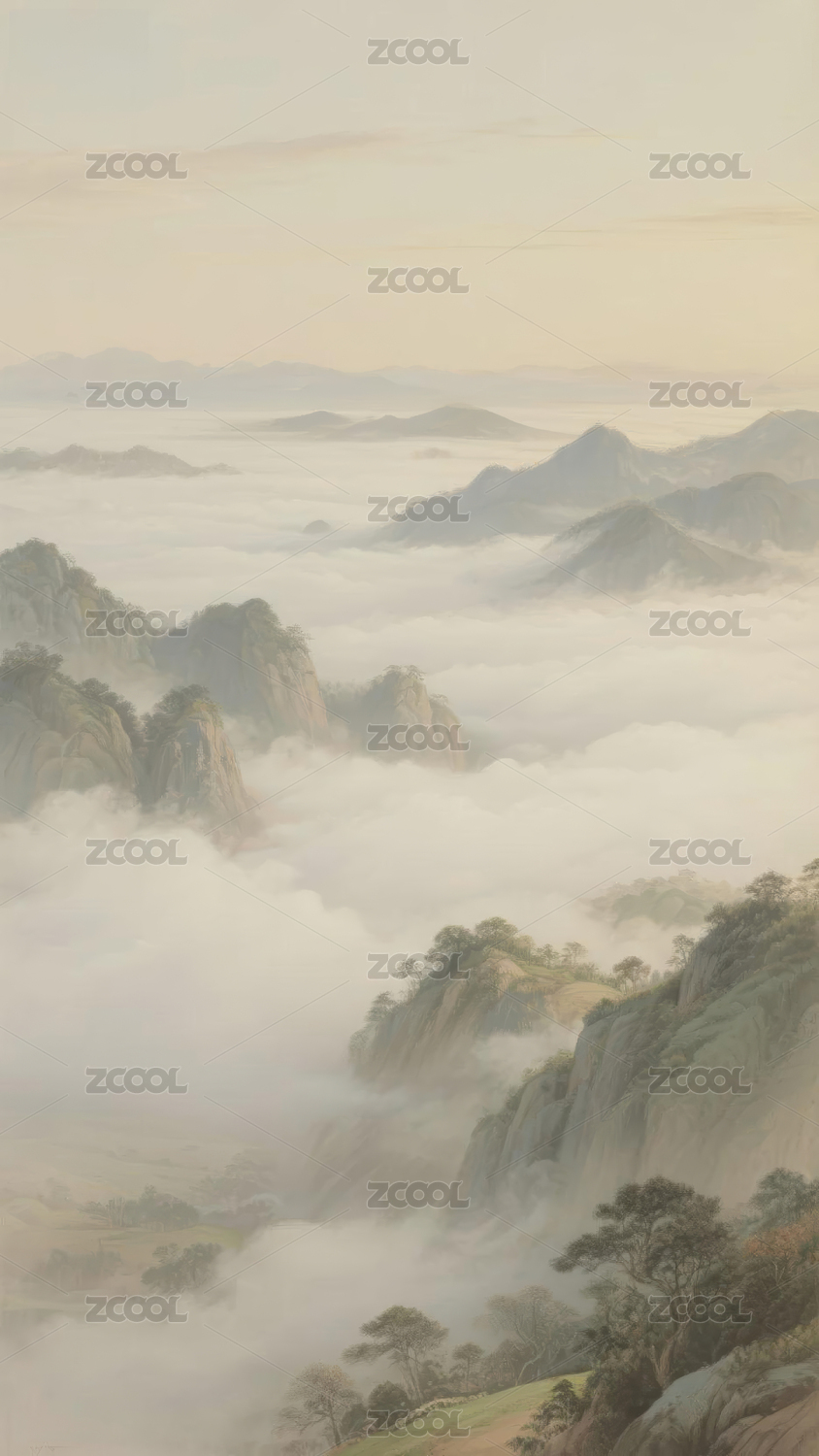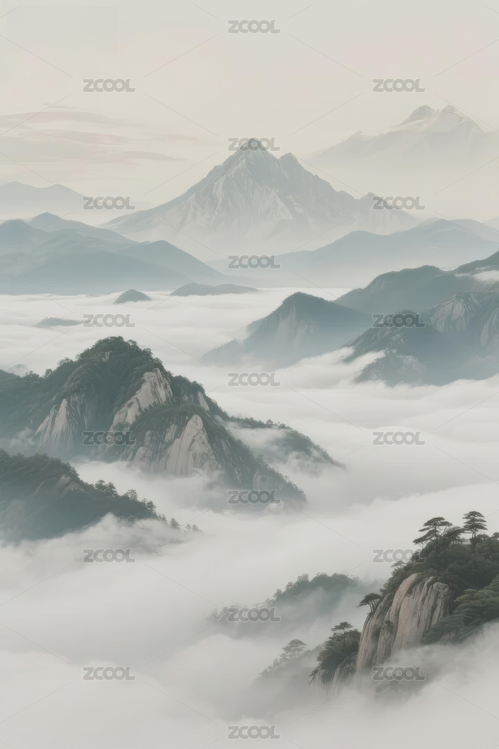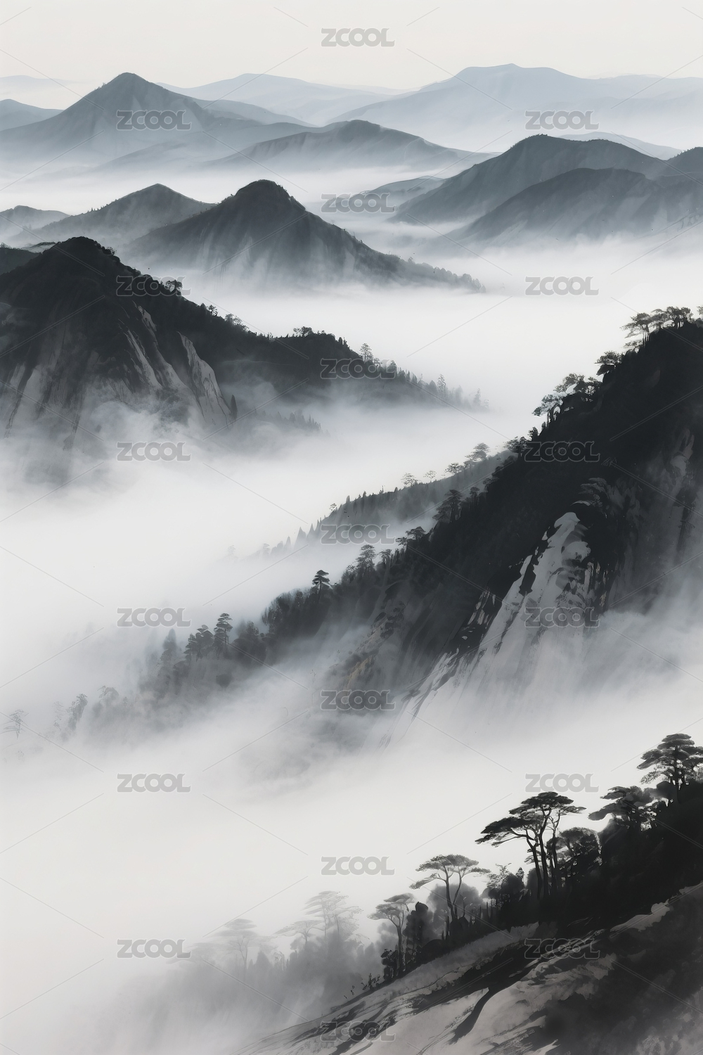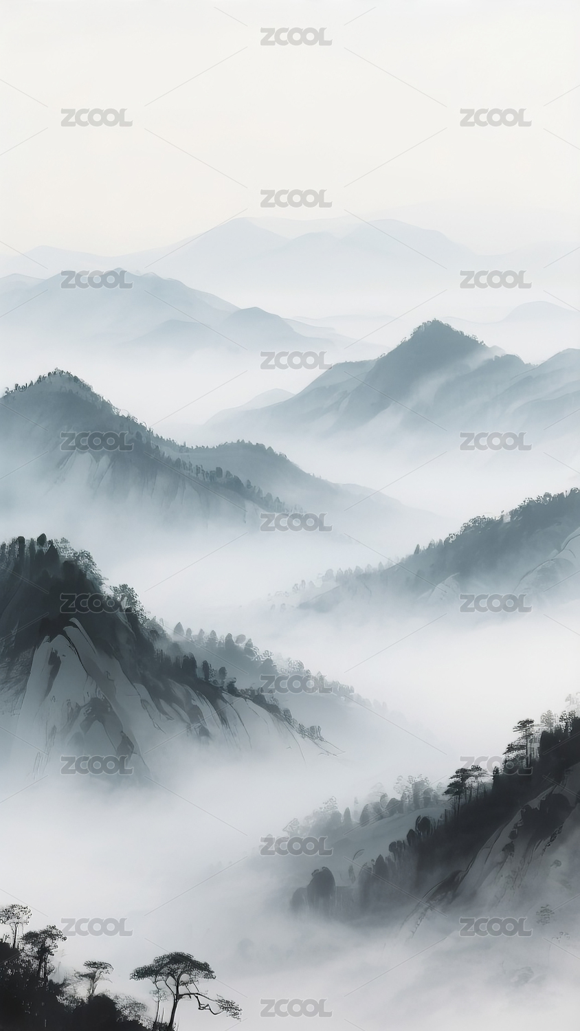 山, 水, 云, 雾, 远山, 水墨, 淡雅, 自然, 风景, 艺术