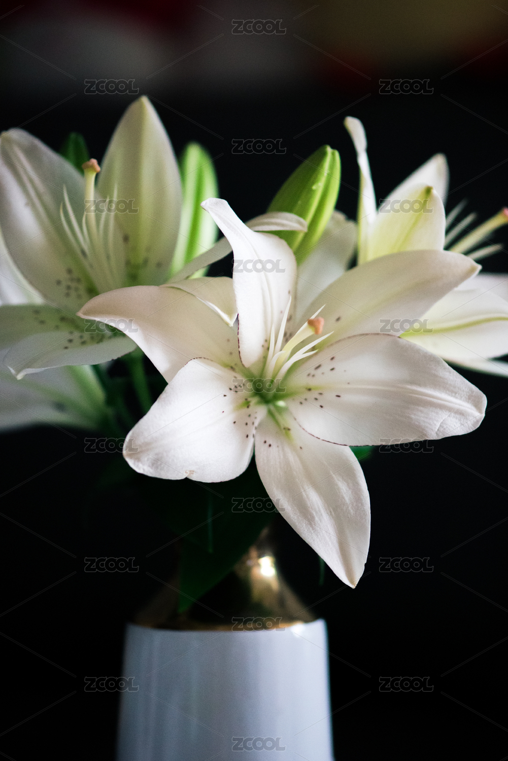 百合花,盛开,花瓣,花朵,白色,花瓶