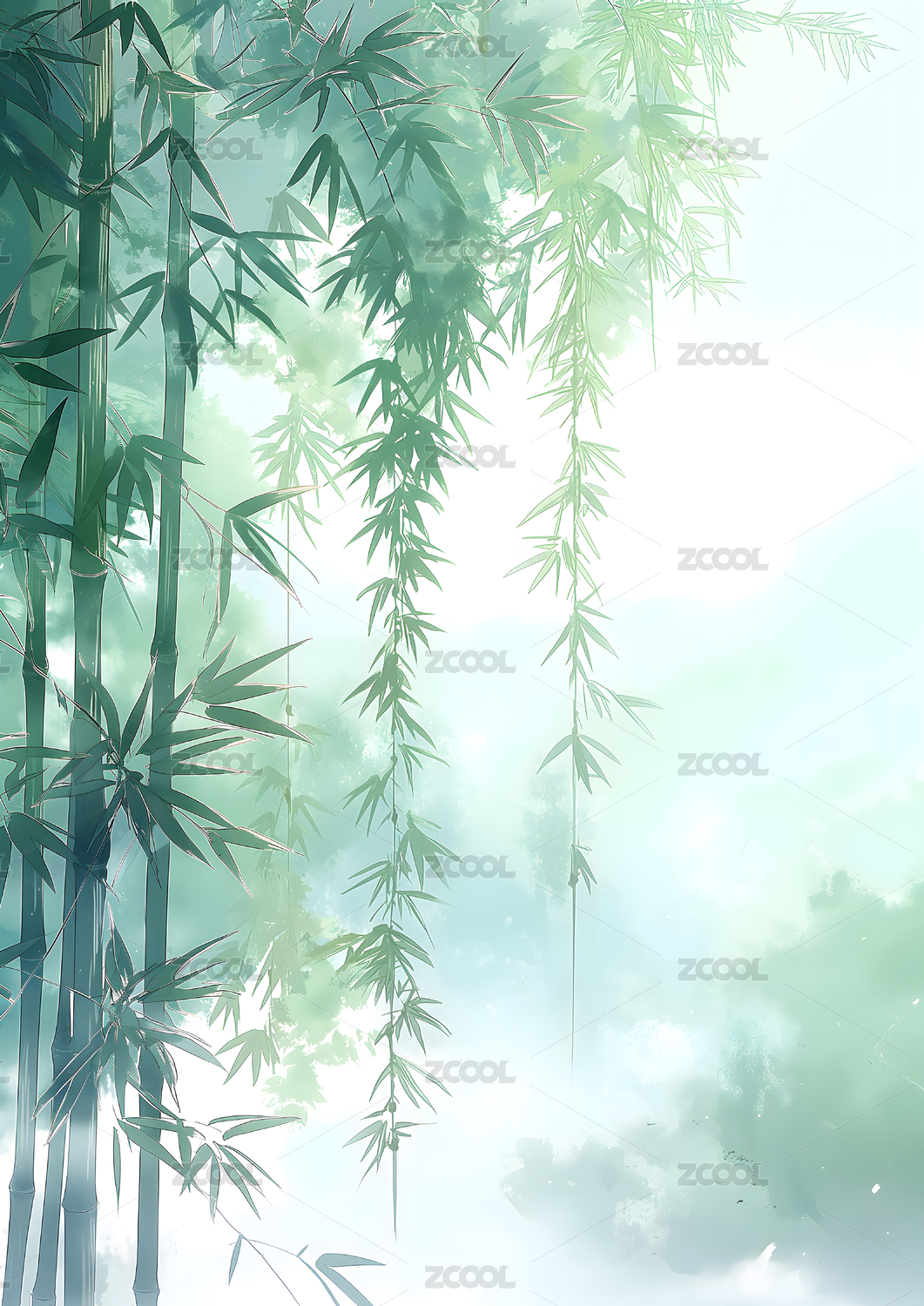 背景,插画,唯美,绿色,竹林,竹叶,水墨,清新,自然,意境