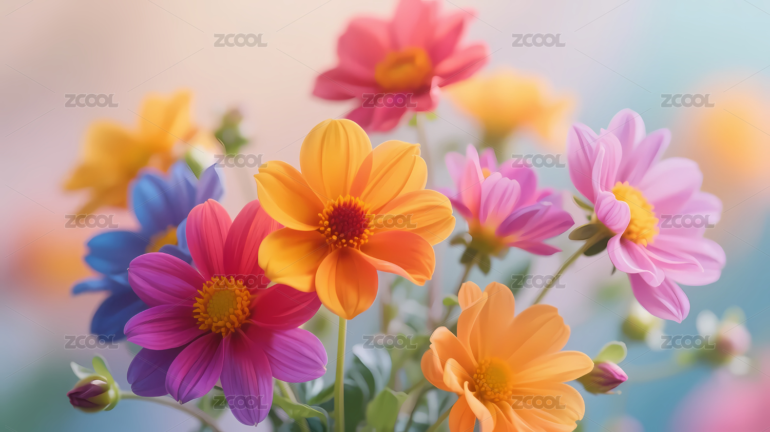 自然,生机,阳光,绿色,植物,花朵,紫色,黄色,粉色,花瓣