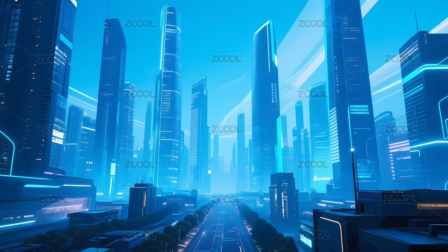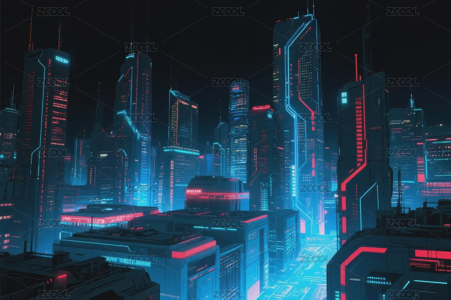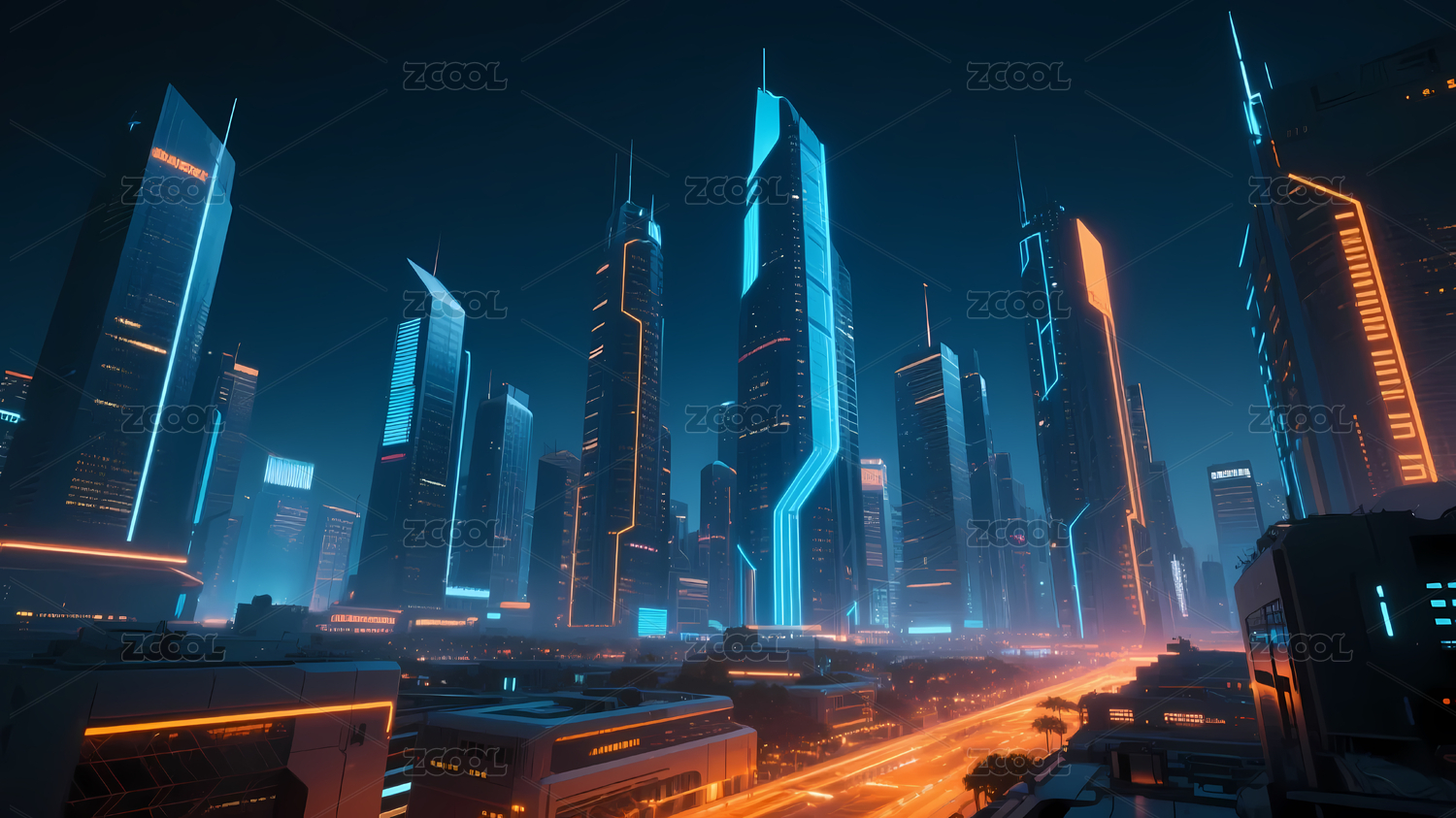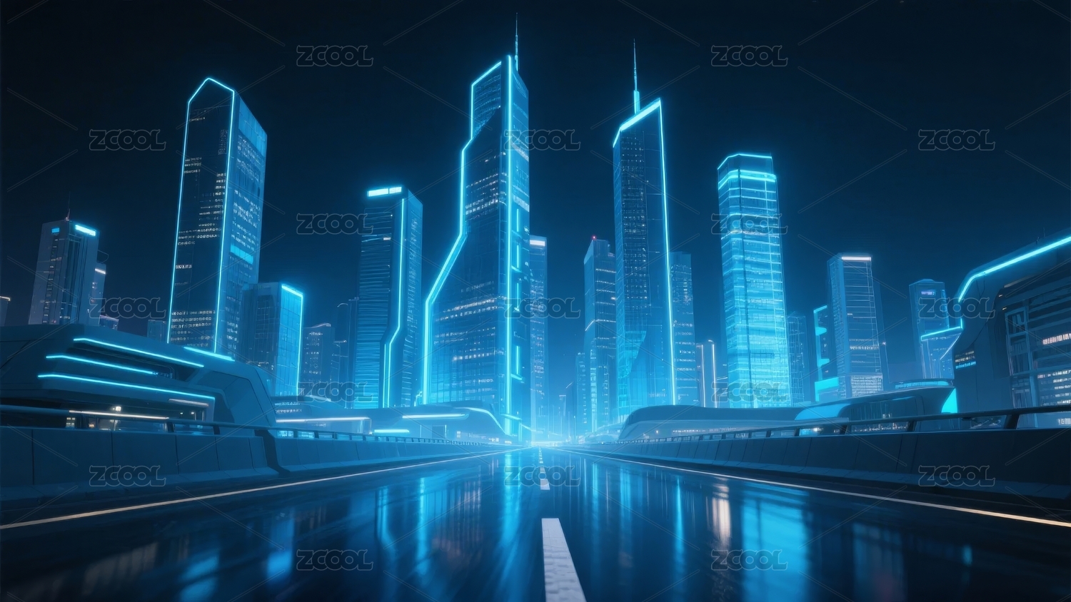 蓝色未来都市夜景