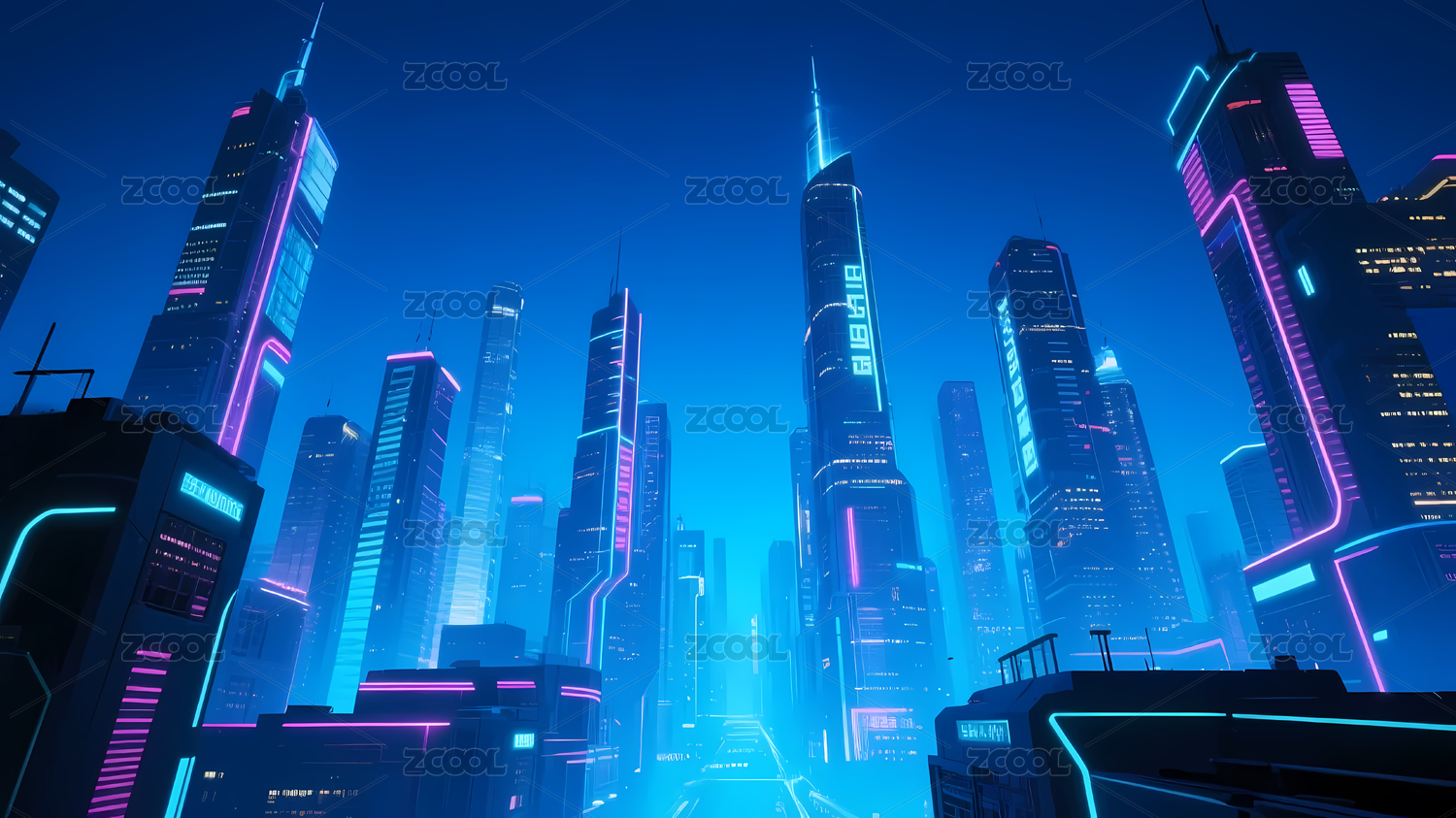 霓虹灯蓝紫城市夜景