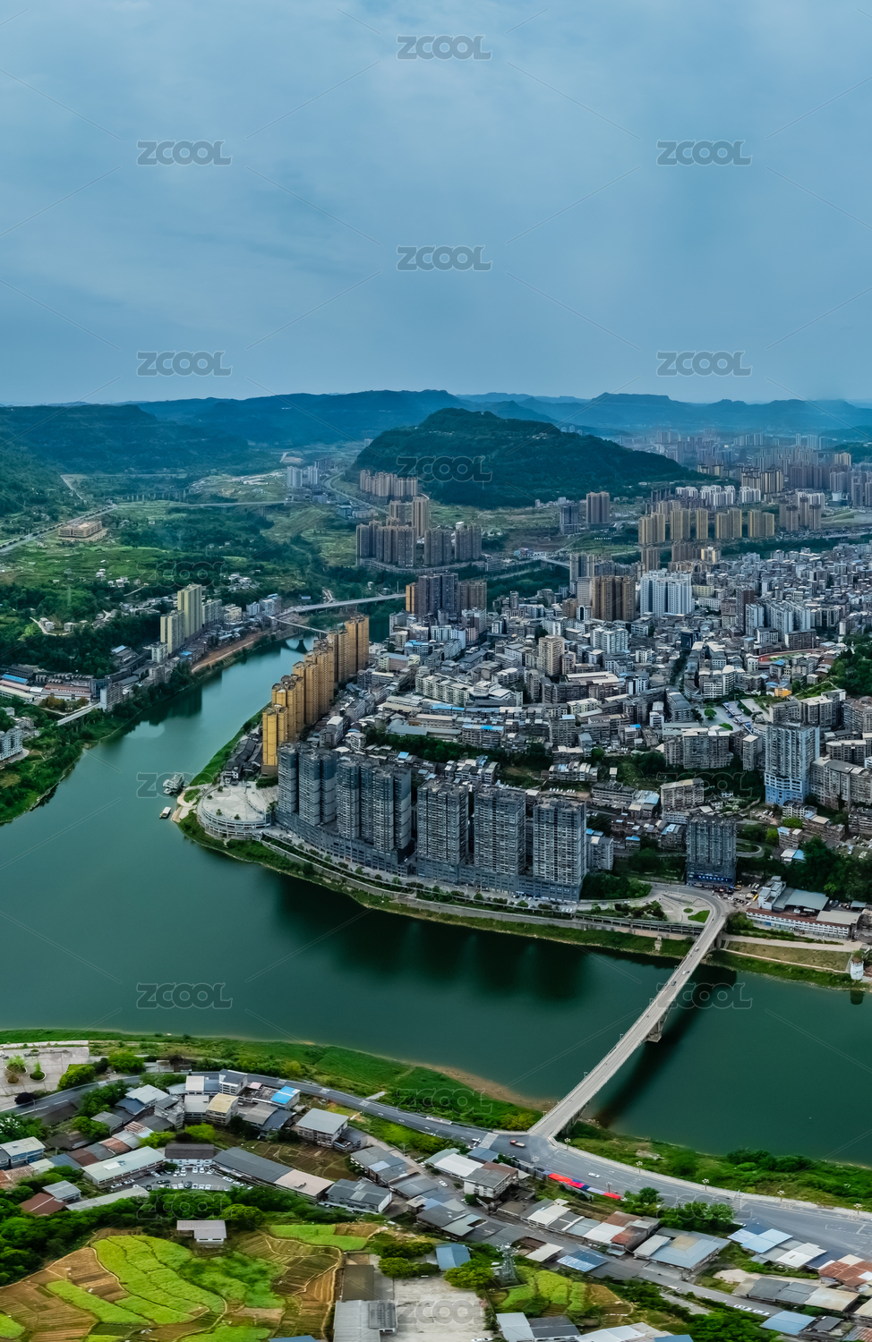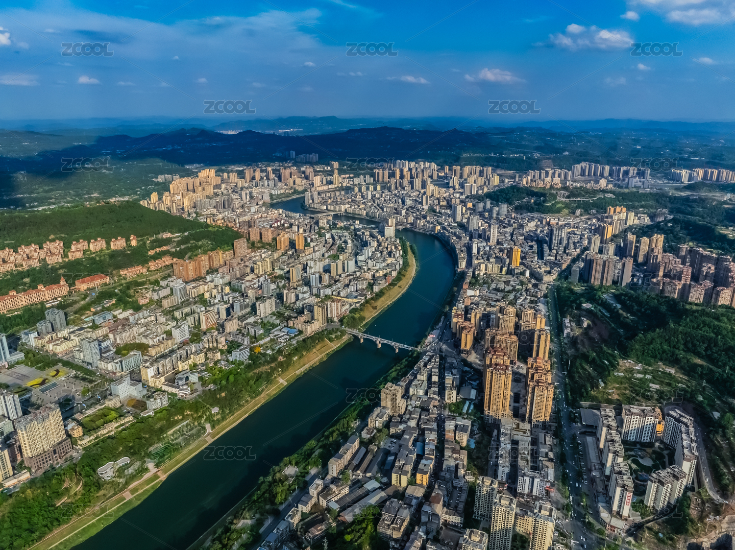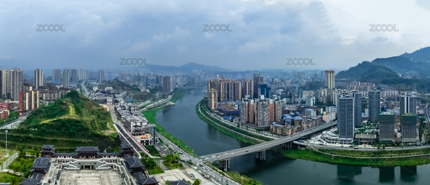 中国四川省巴中市平昌县巴河大桥高楼建筑