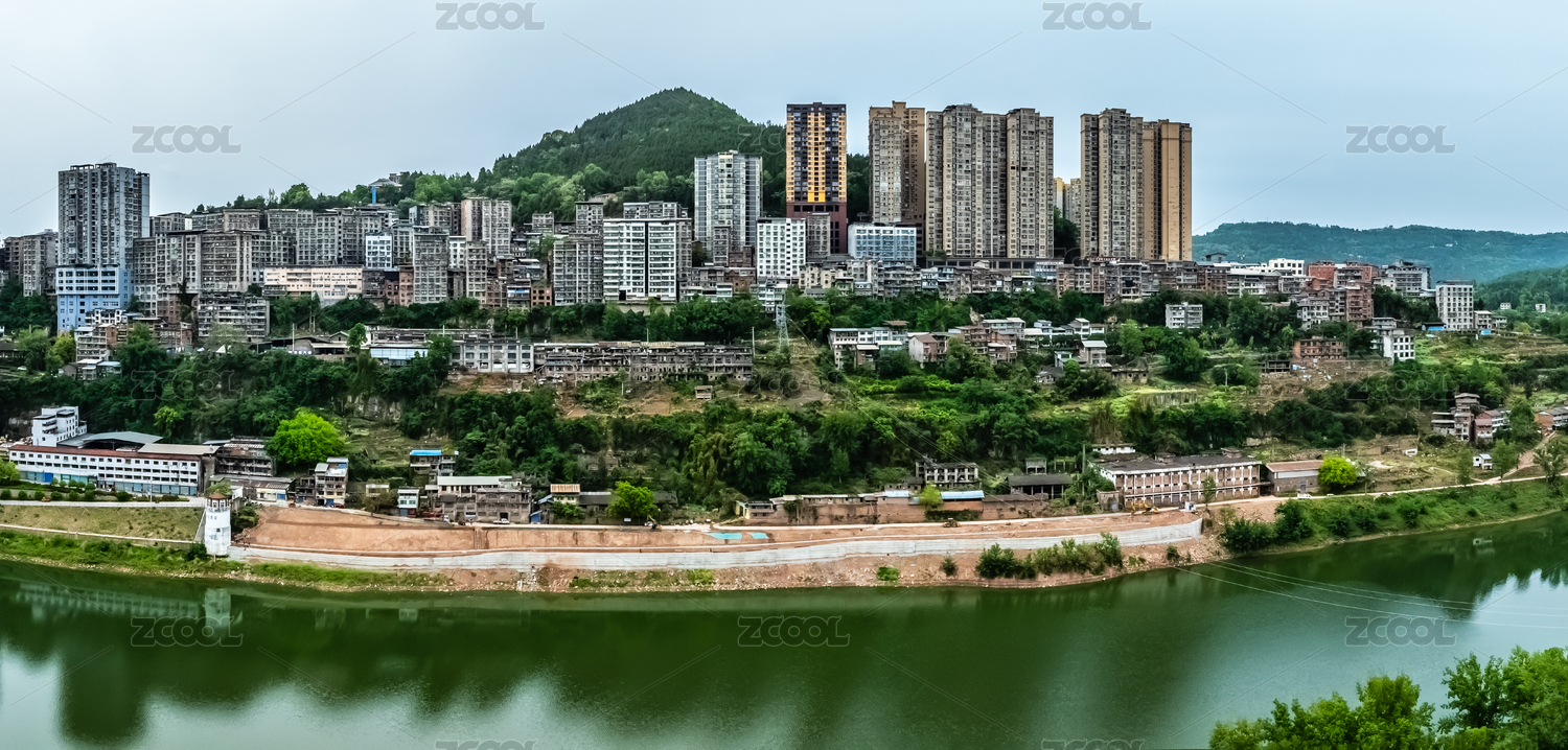 中国四川省南部县城区嘉陵江外滩高楼建筑