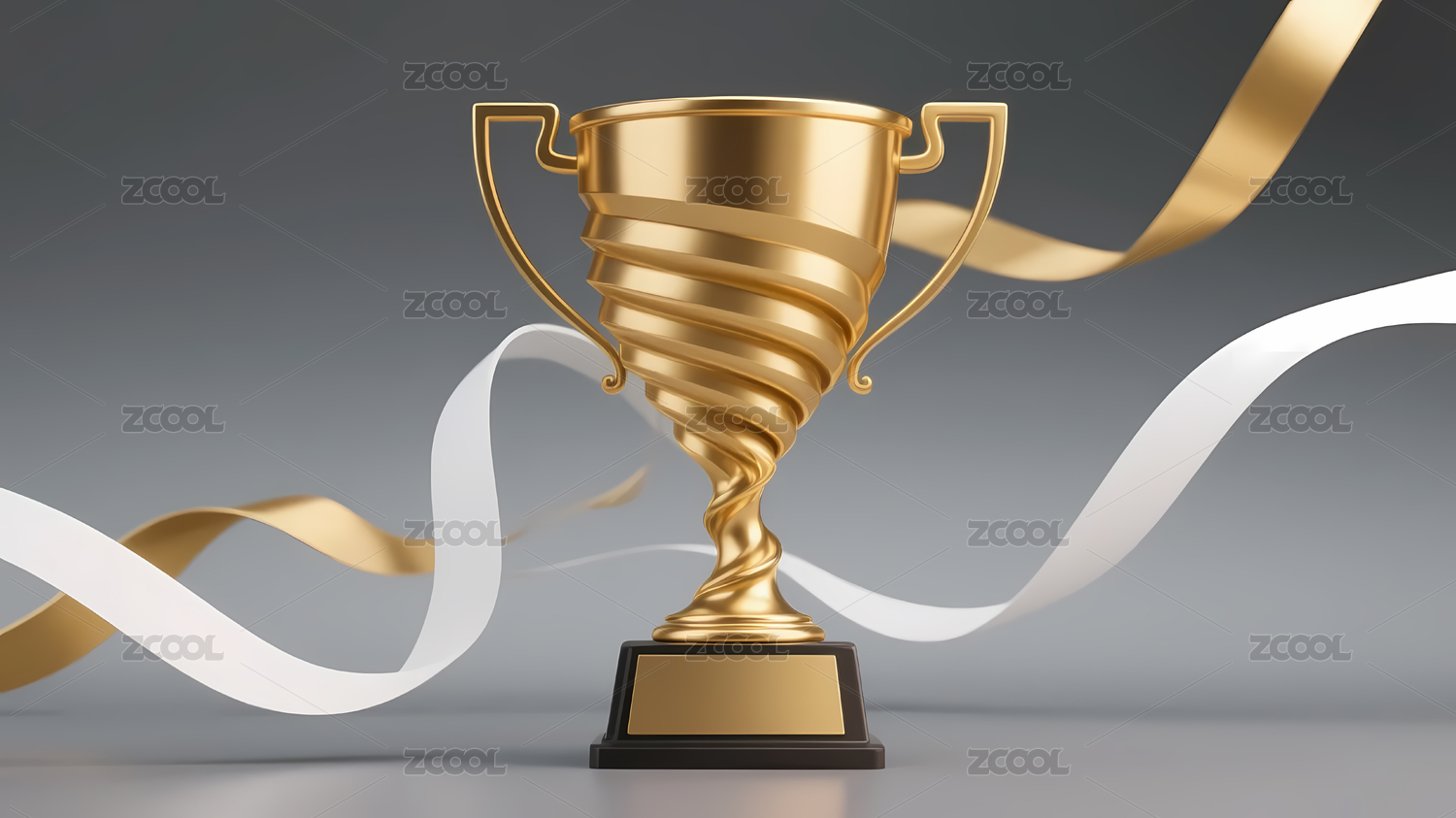 金色奖杯与彩带
