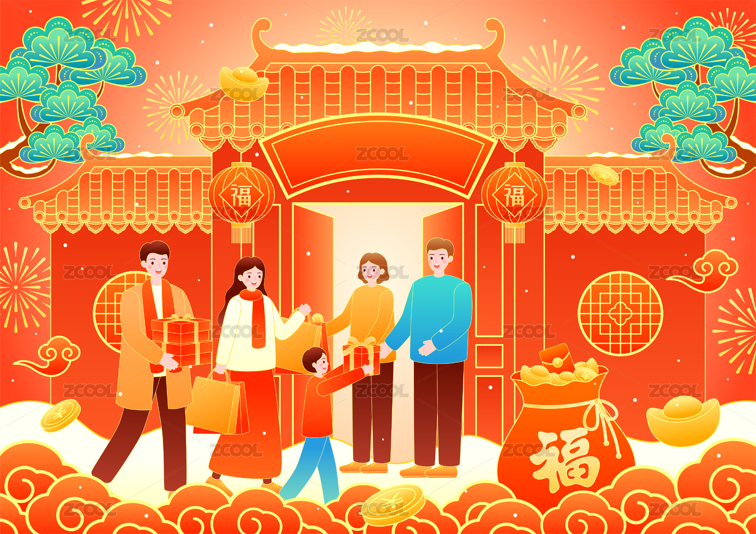 过年新春插画