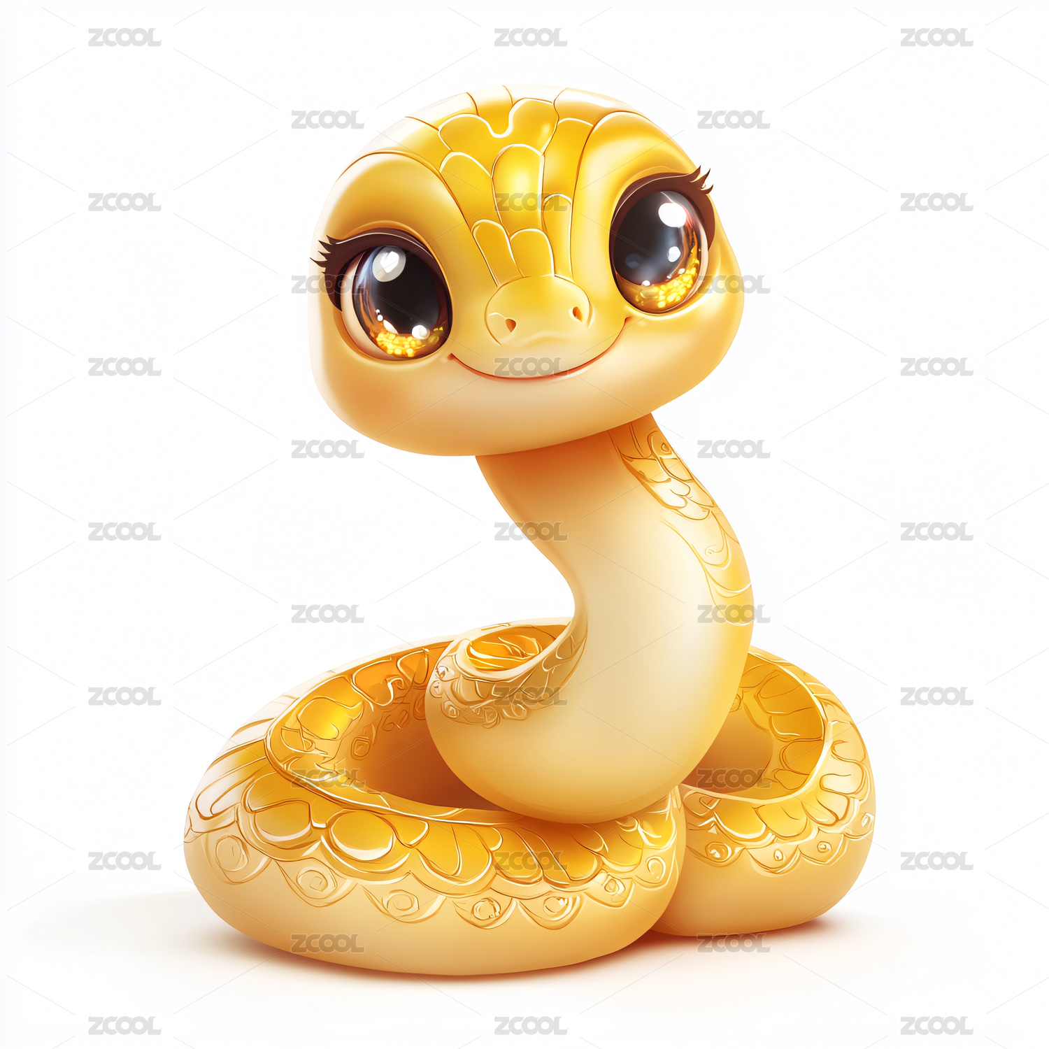 3D金色卡通可爱蛇插画