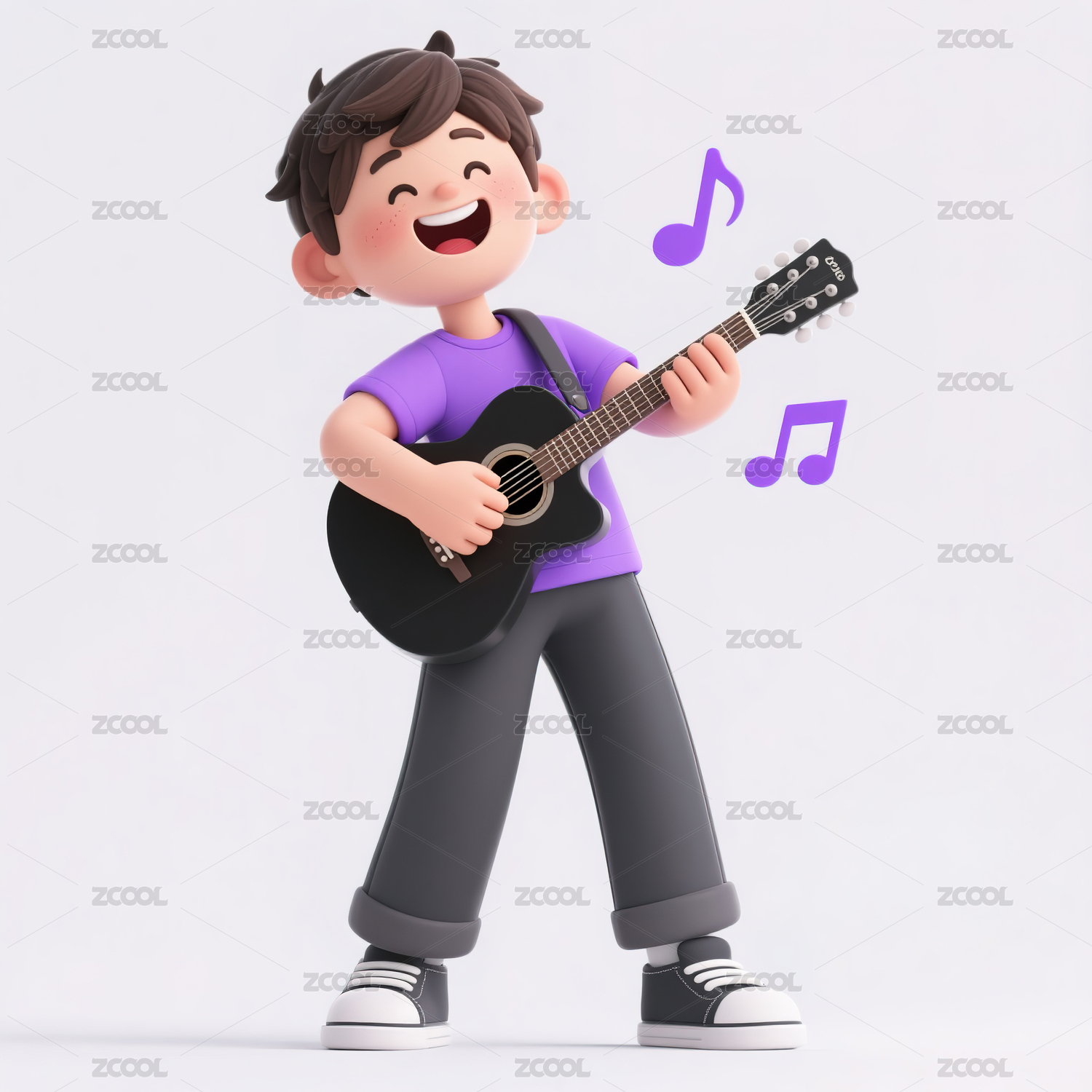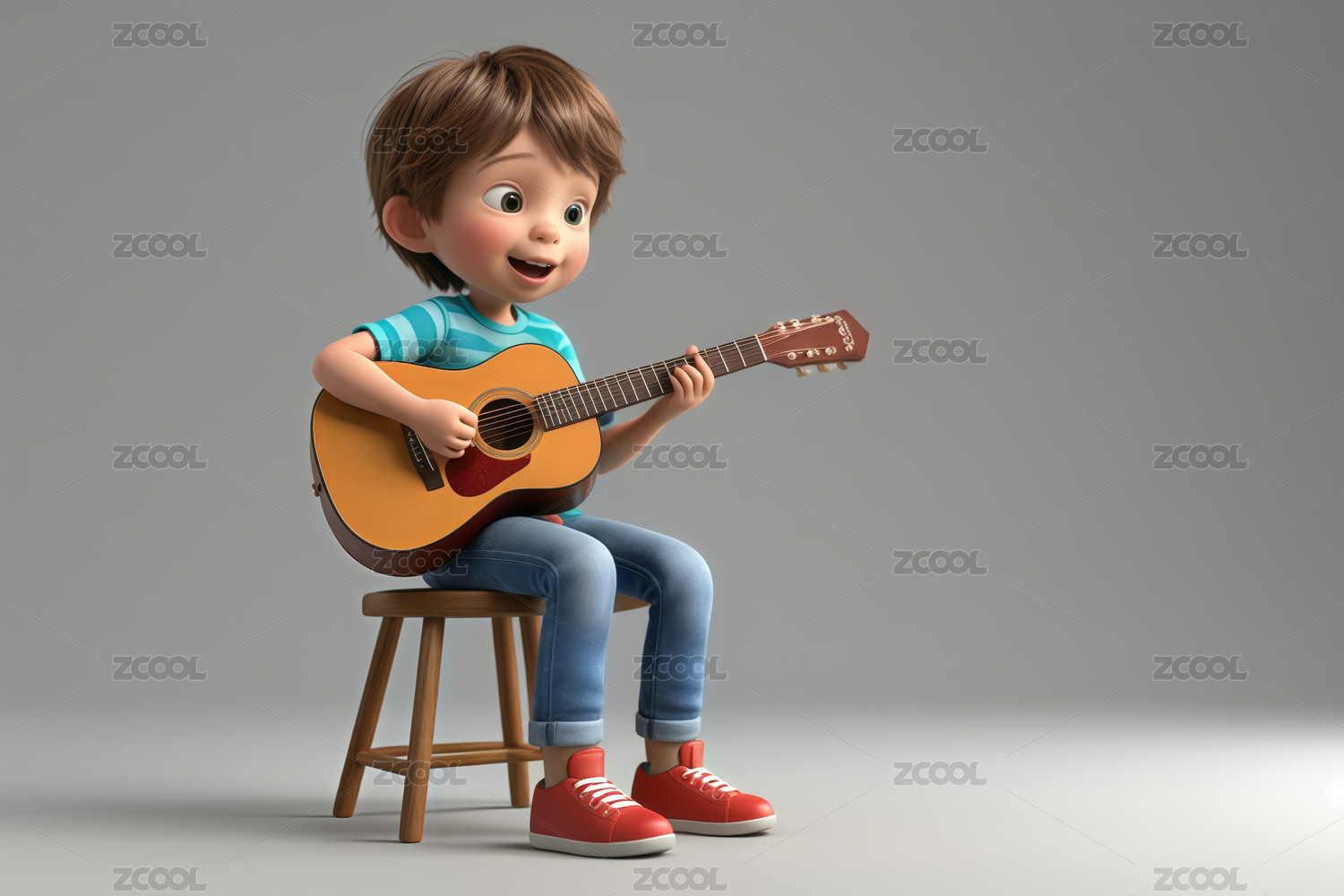 一个弹吉他的男孩3d插画