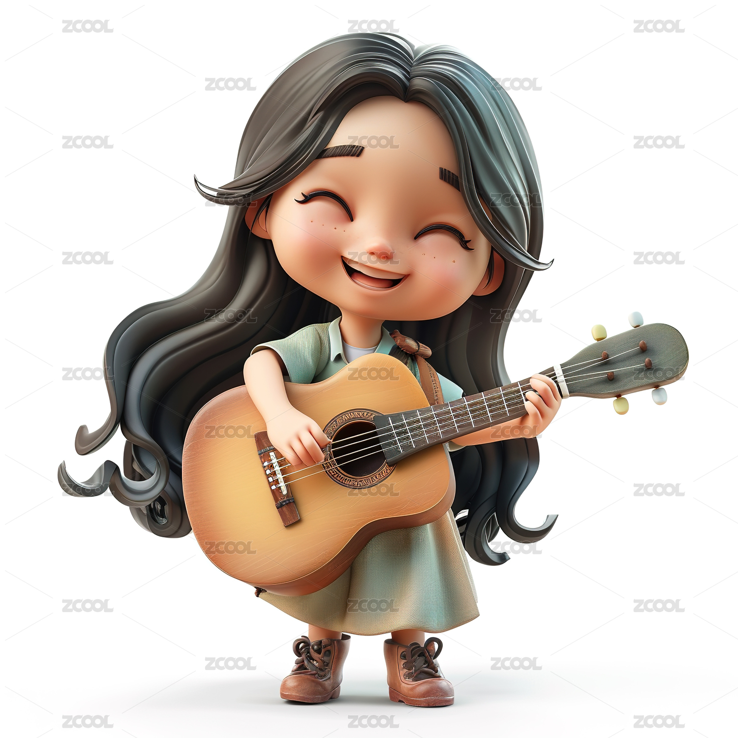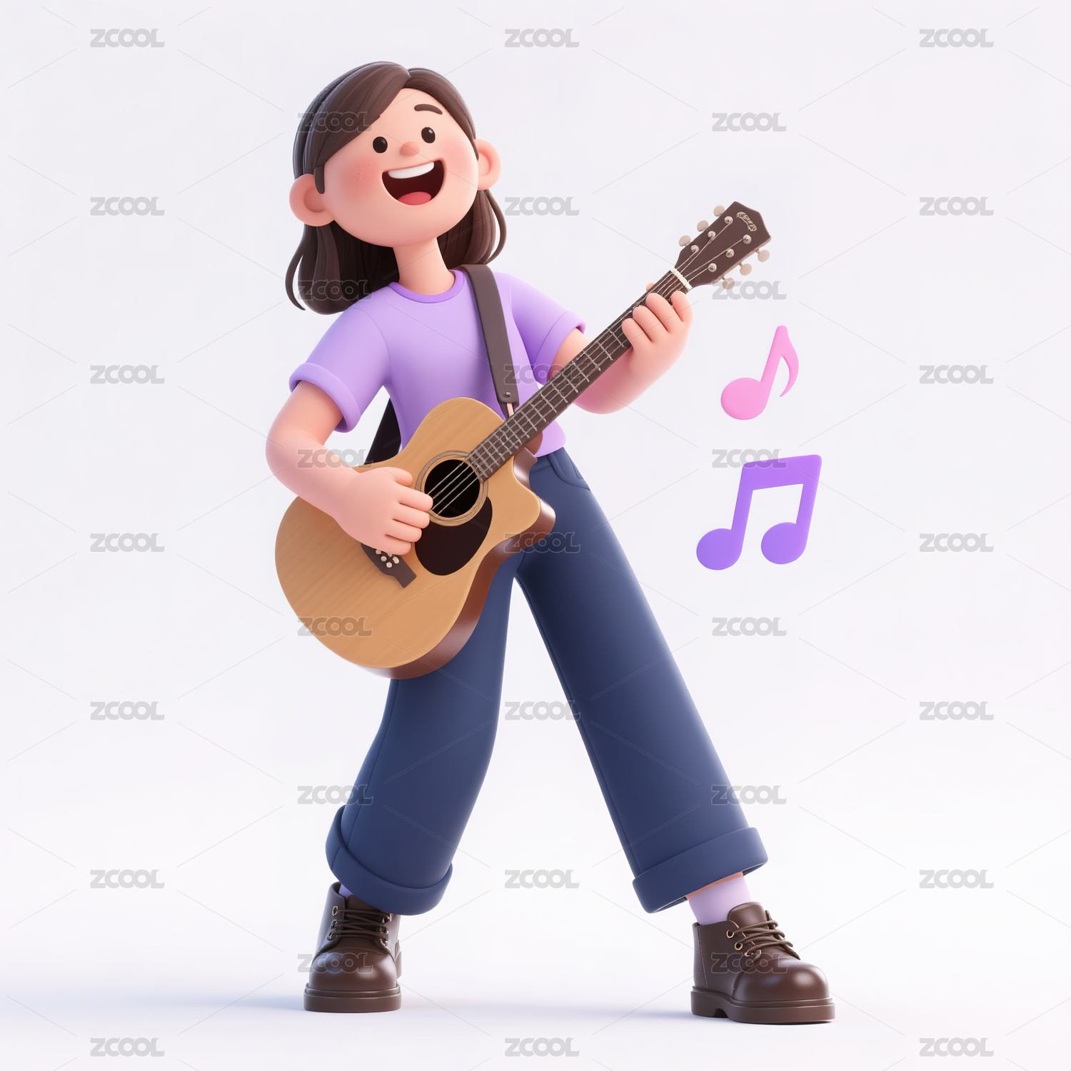 卡通3D女孩弹奏吉他元素
