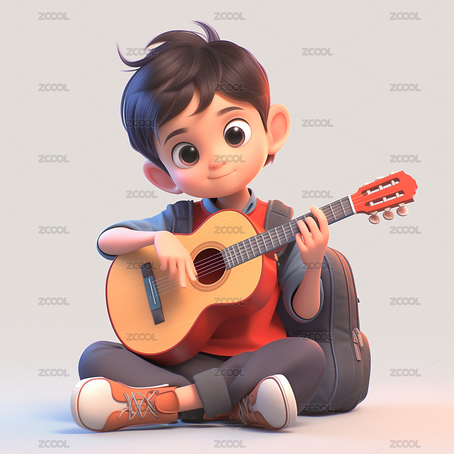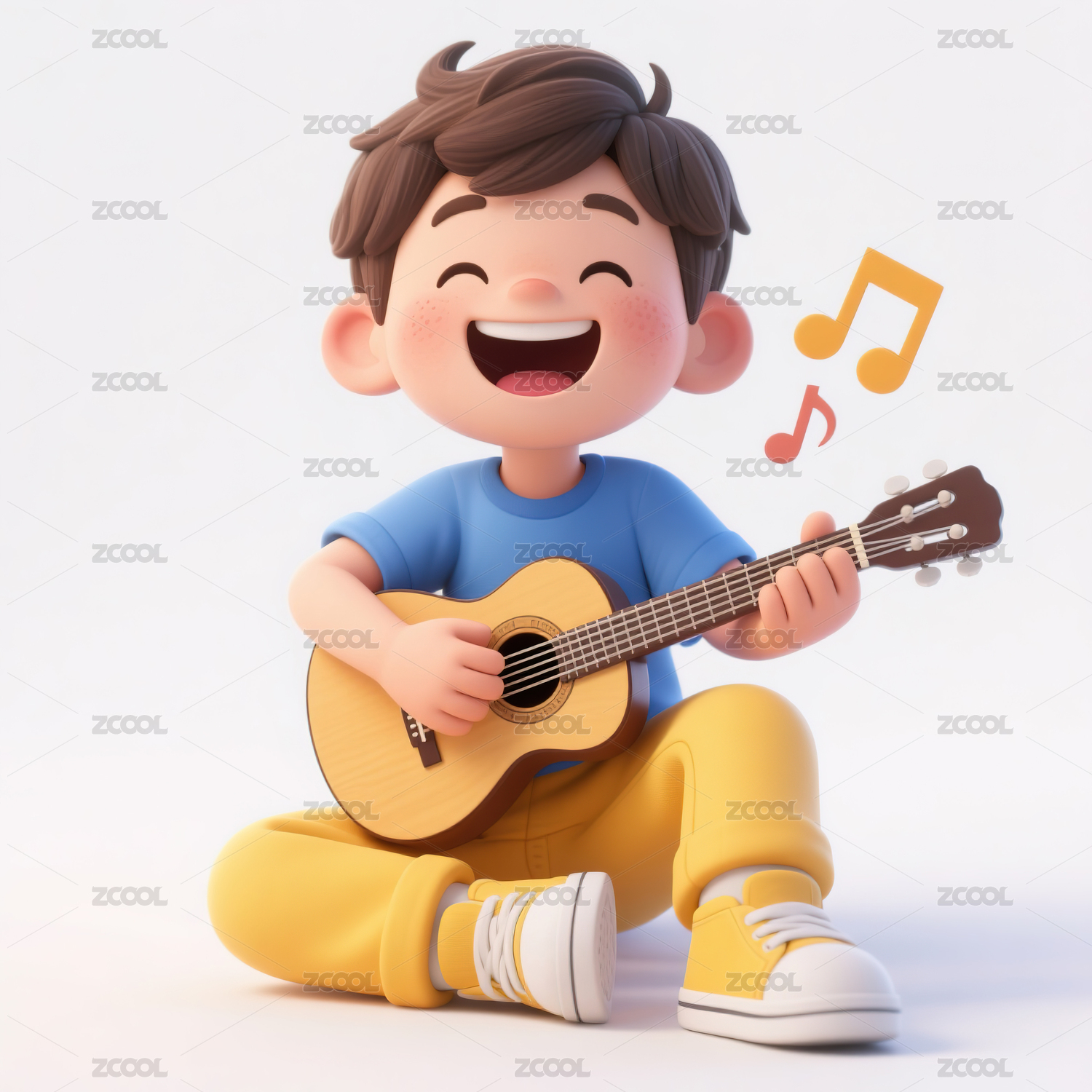 坐着弹吉他的男孩3d插画