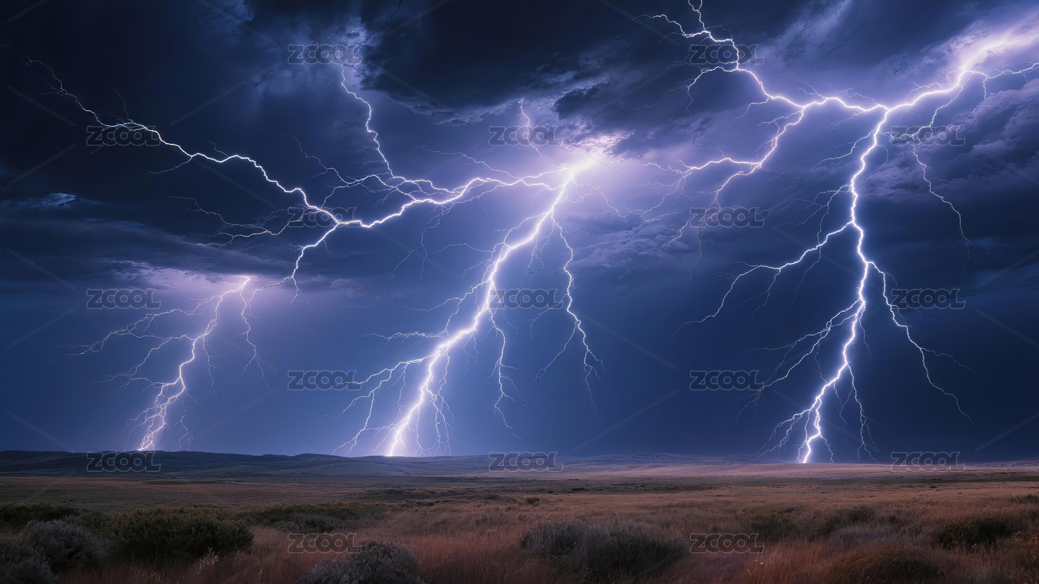 旷野中的闪电风暴