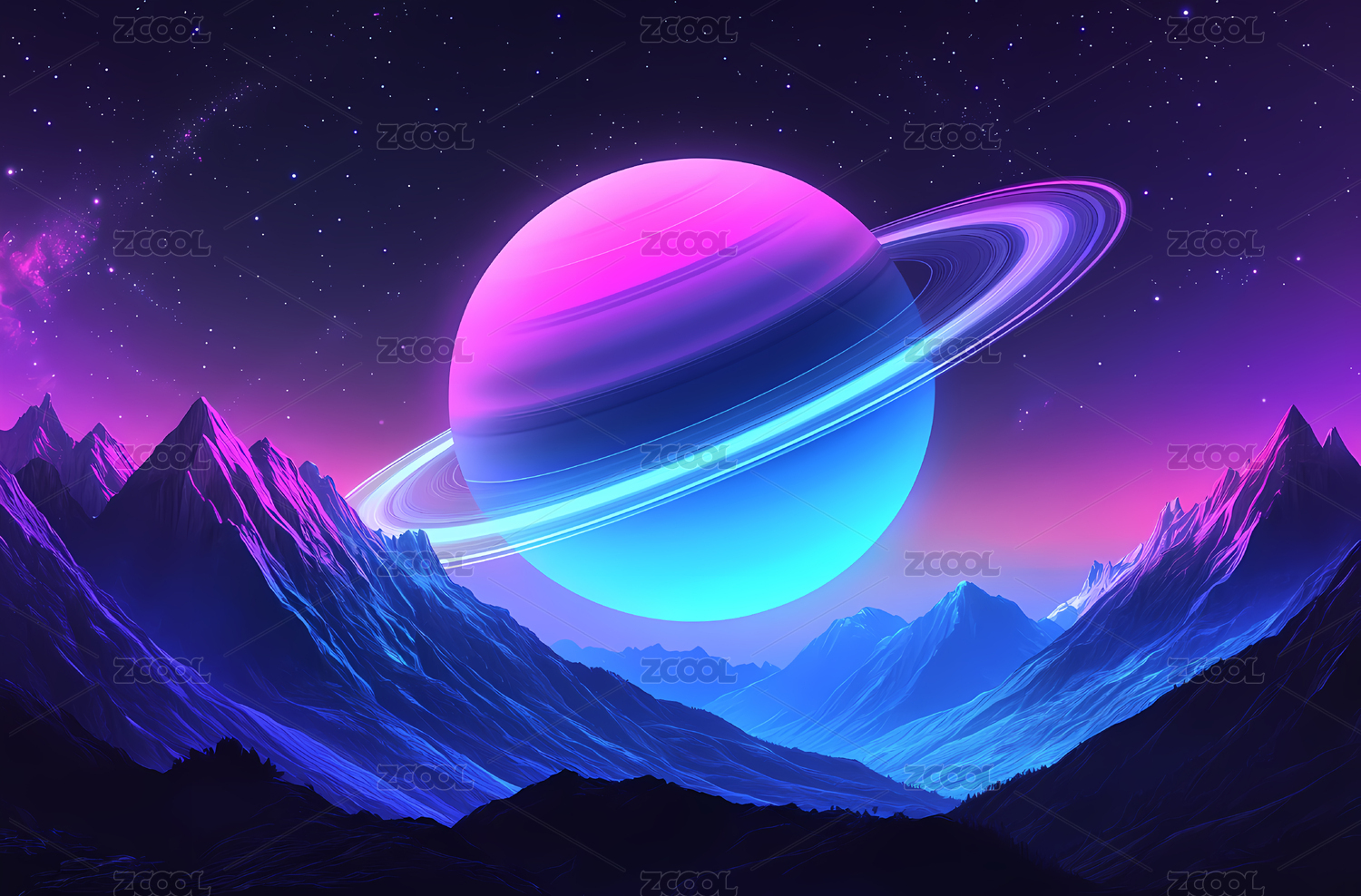 带环行星的宇宙星空图