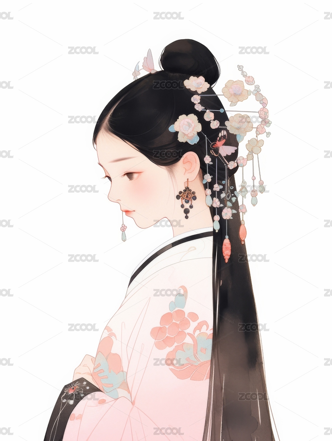 女子,插画,卡通,漫画,背景,优雅,服饰,传统,古典,和服