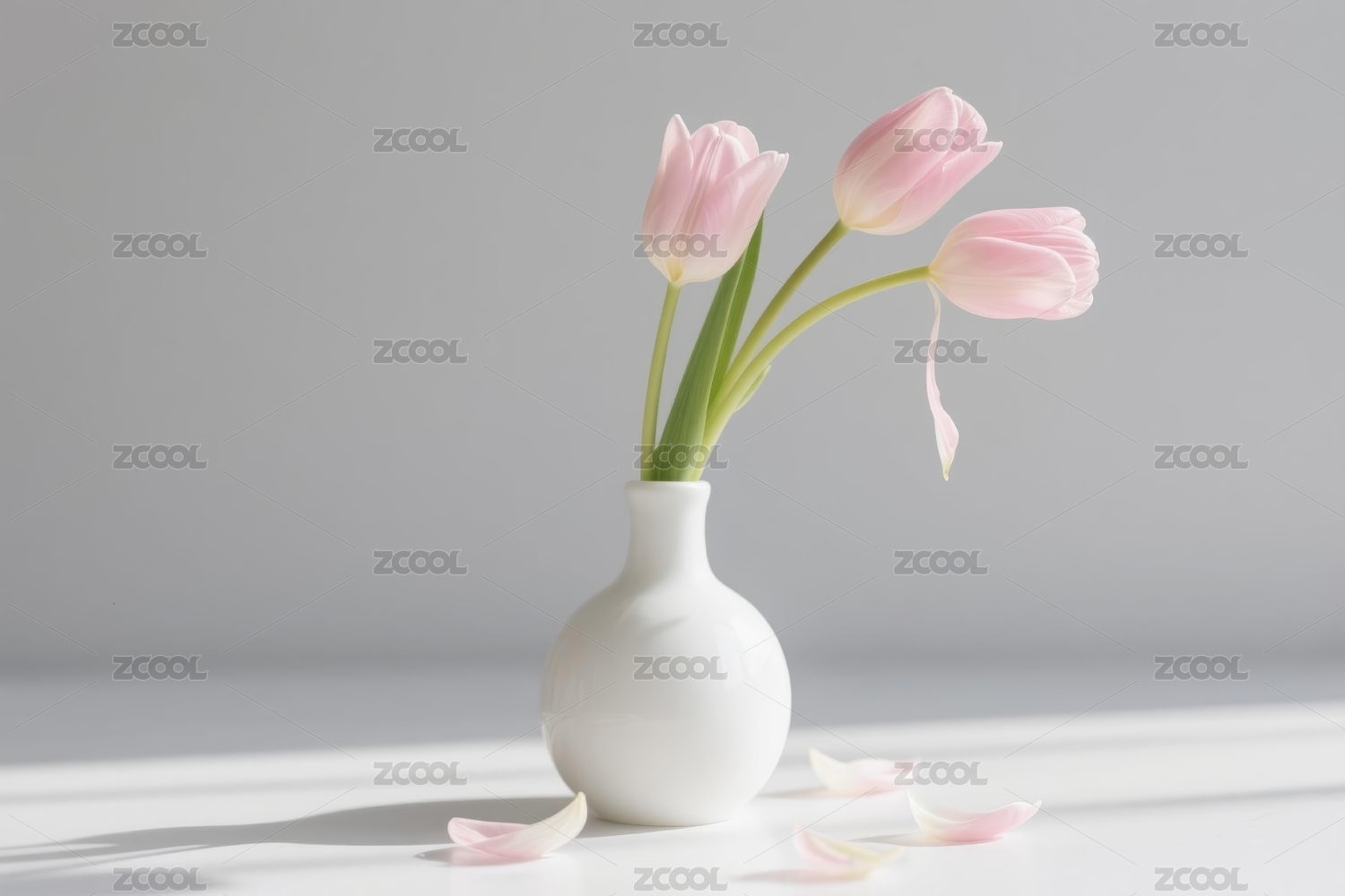粉色郁金香与白瓷花瓶
