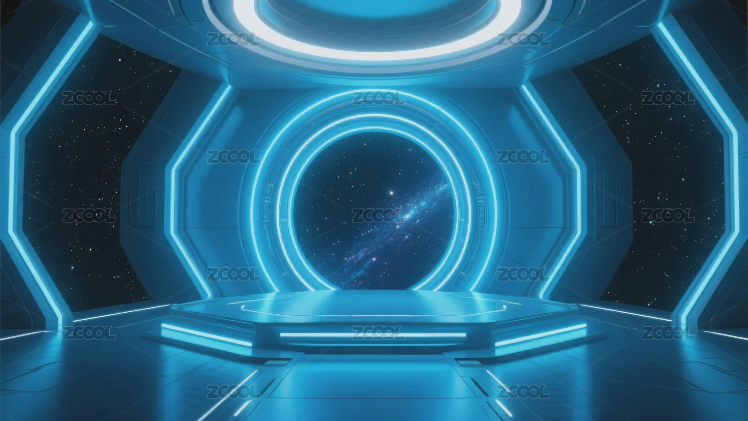 蓝色, 场景, 视觉, 灯光, 背景, 科幻, 现代,未来, 科技, 圆形