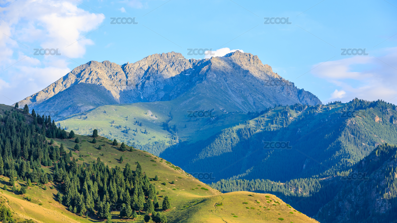 中国新疆伊犁昭苏夏塔草原雪山自然风光
