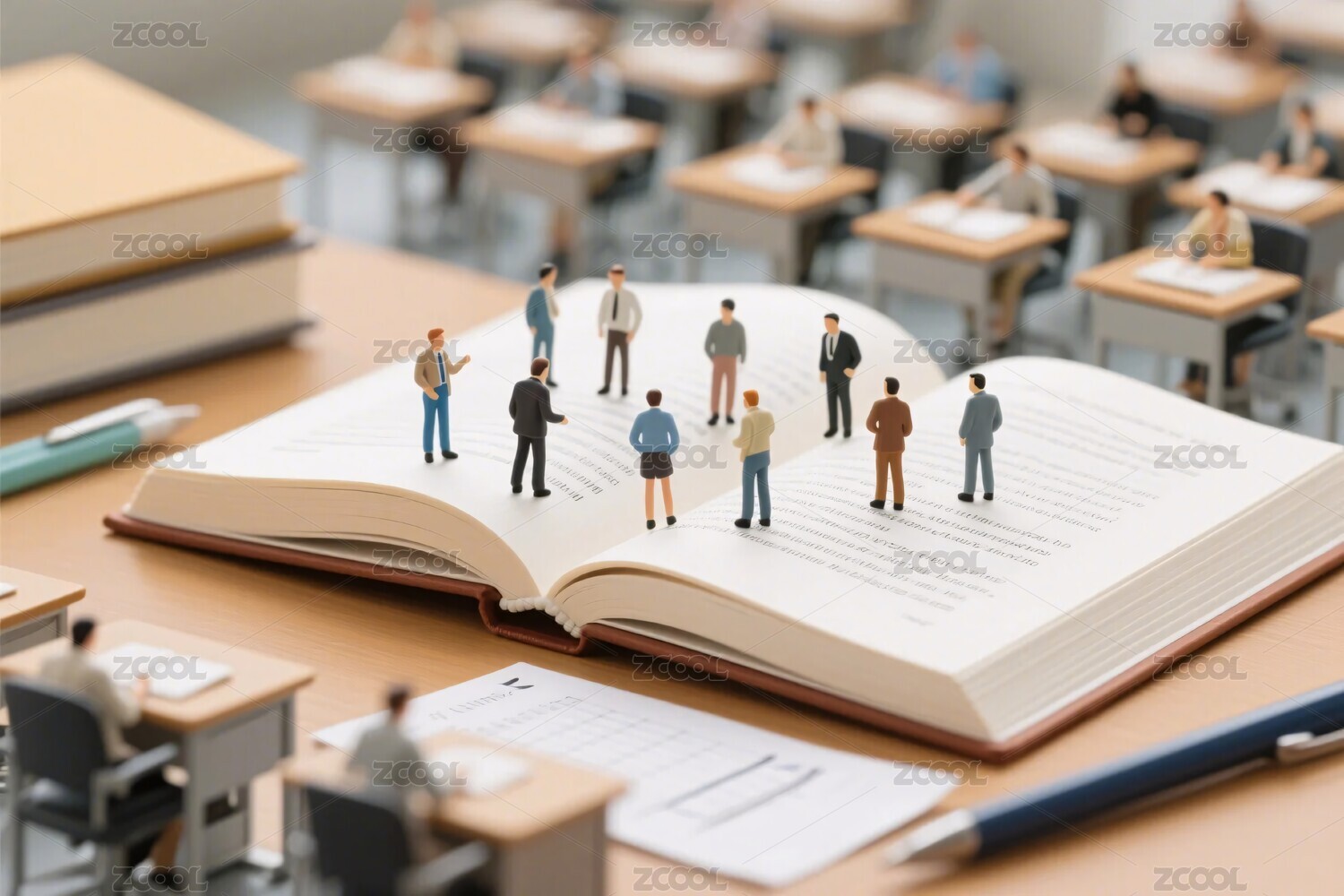 书籍与微缩小人的微缩摄影,关于学历与地位