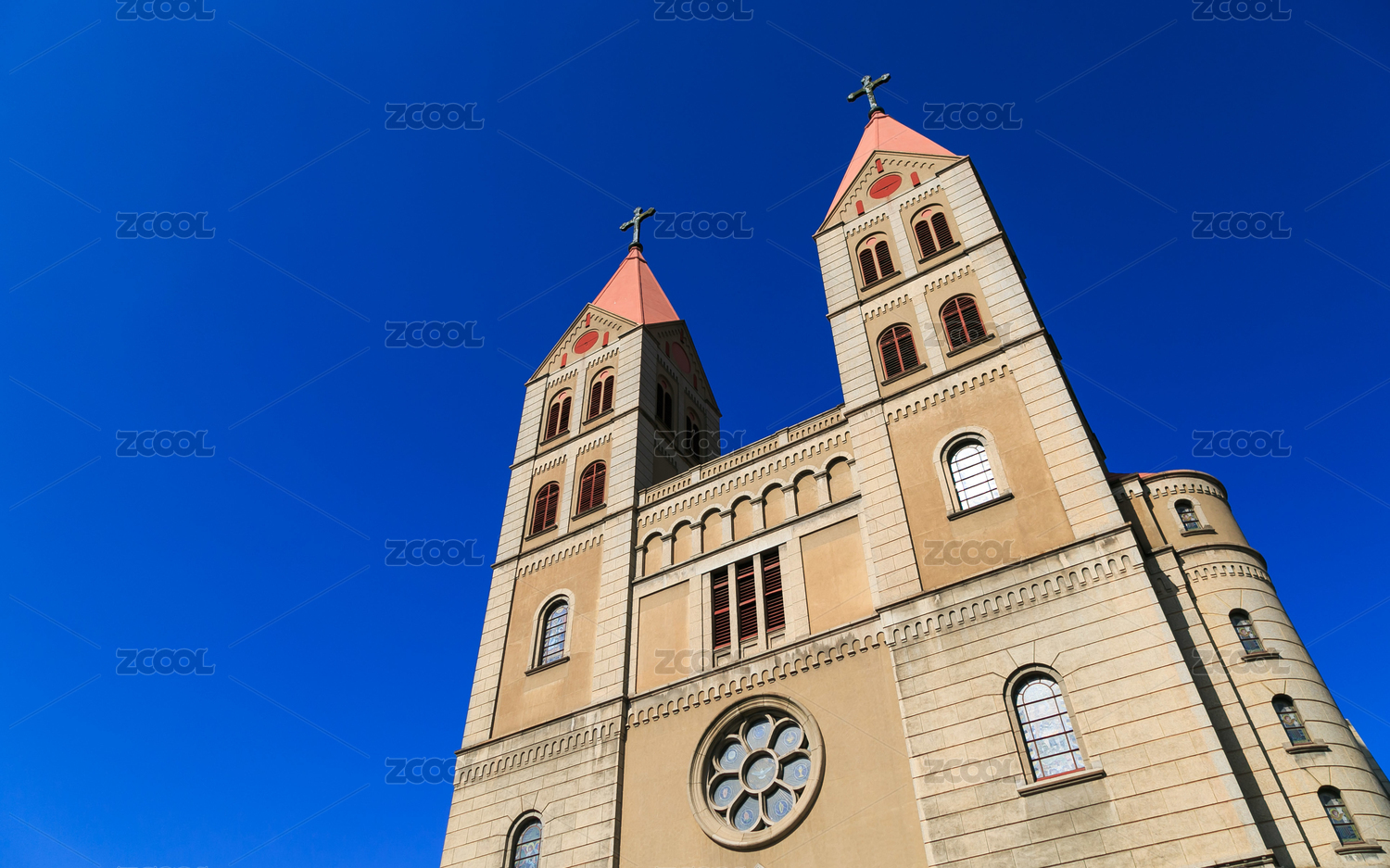 中国山东青岛圣弥厄尔天主教堂德国建筑风光
