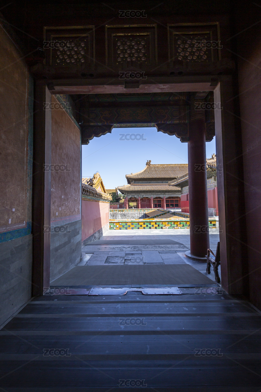 蓝天下的中国北京故宫博物馆的古宫殿建筑