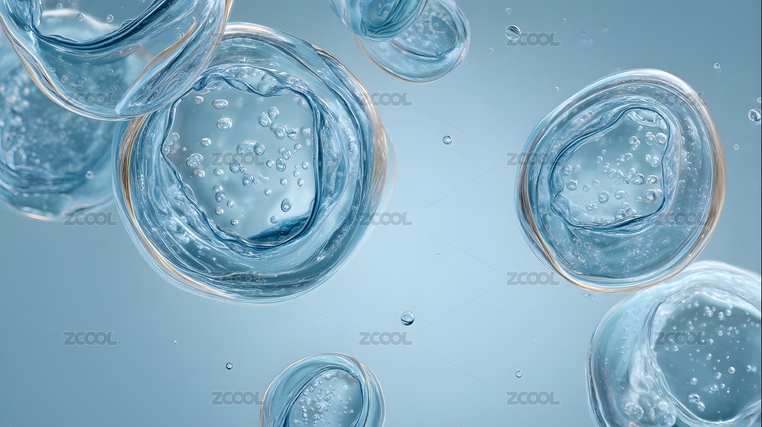 化妆品保湿水分子精华液体气泡背景3d渲染