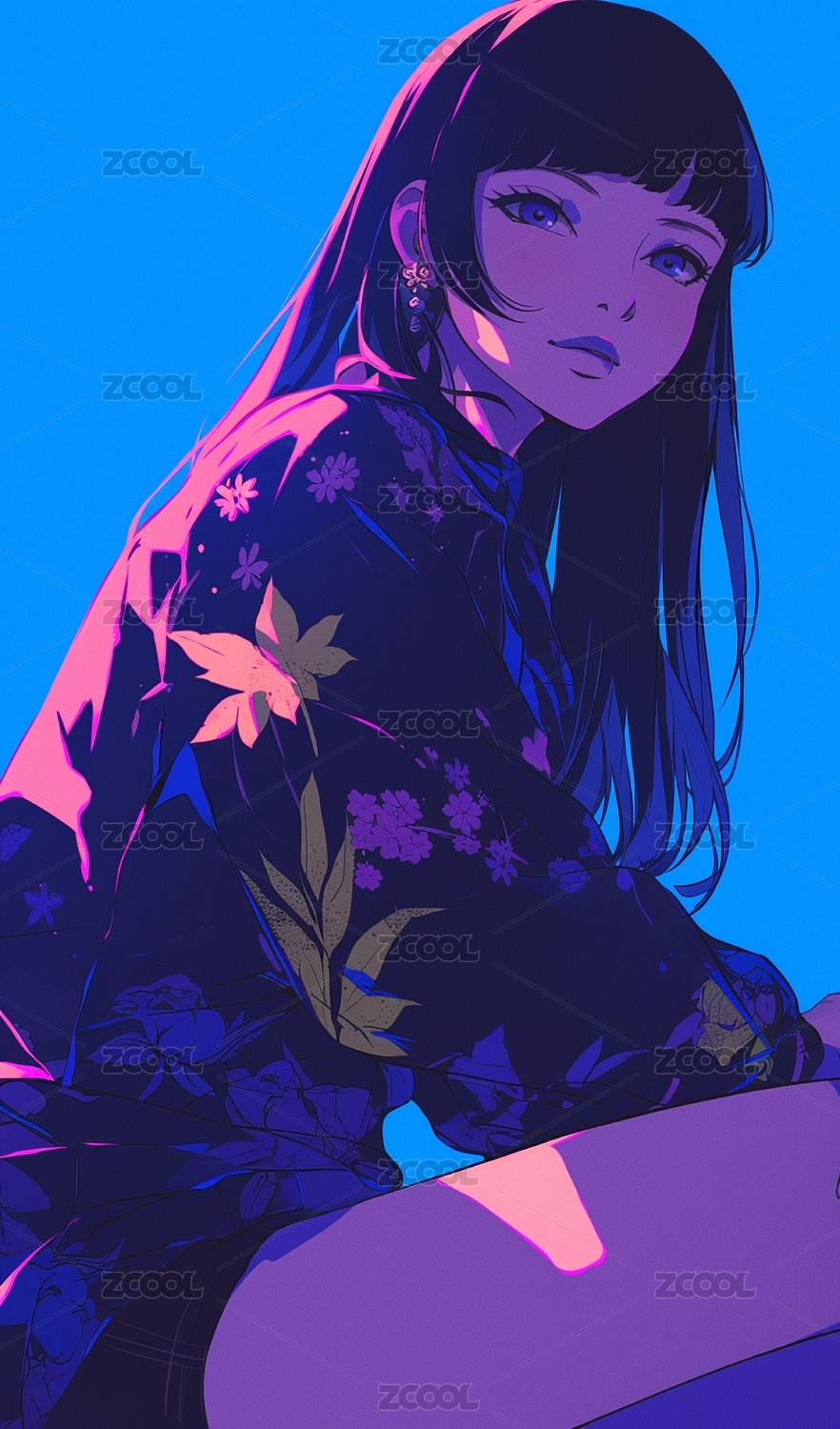 温柔,背景,现代,风格,插画,卡通,漫画,细腻,色彩,紫色