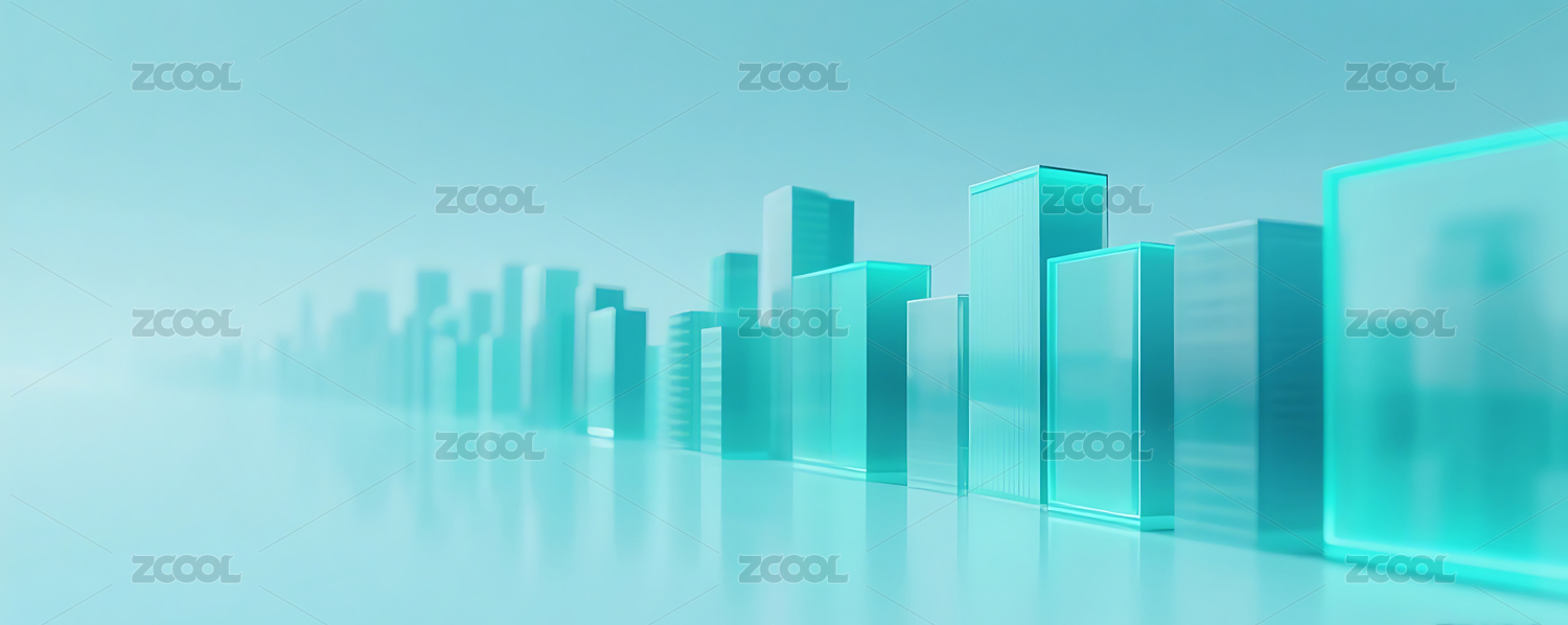 蓝绿色几何玻璃城市建筑背景