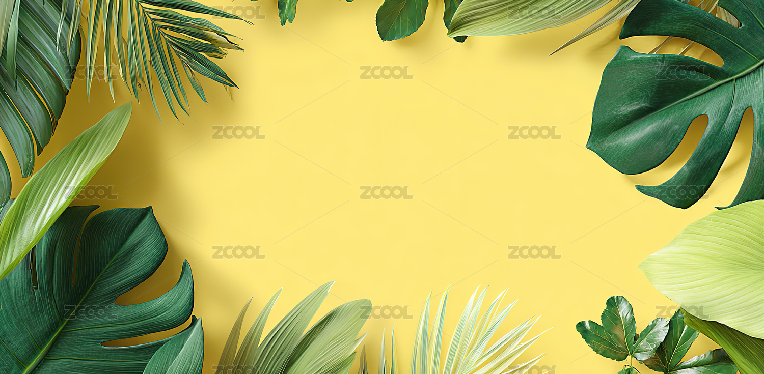 黄绿相间热带叶片环绕背景