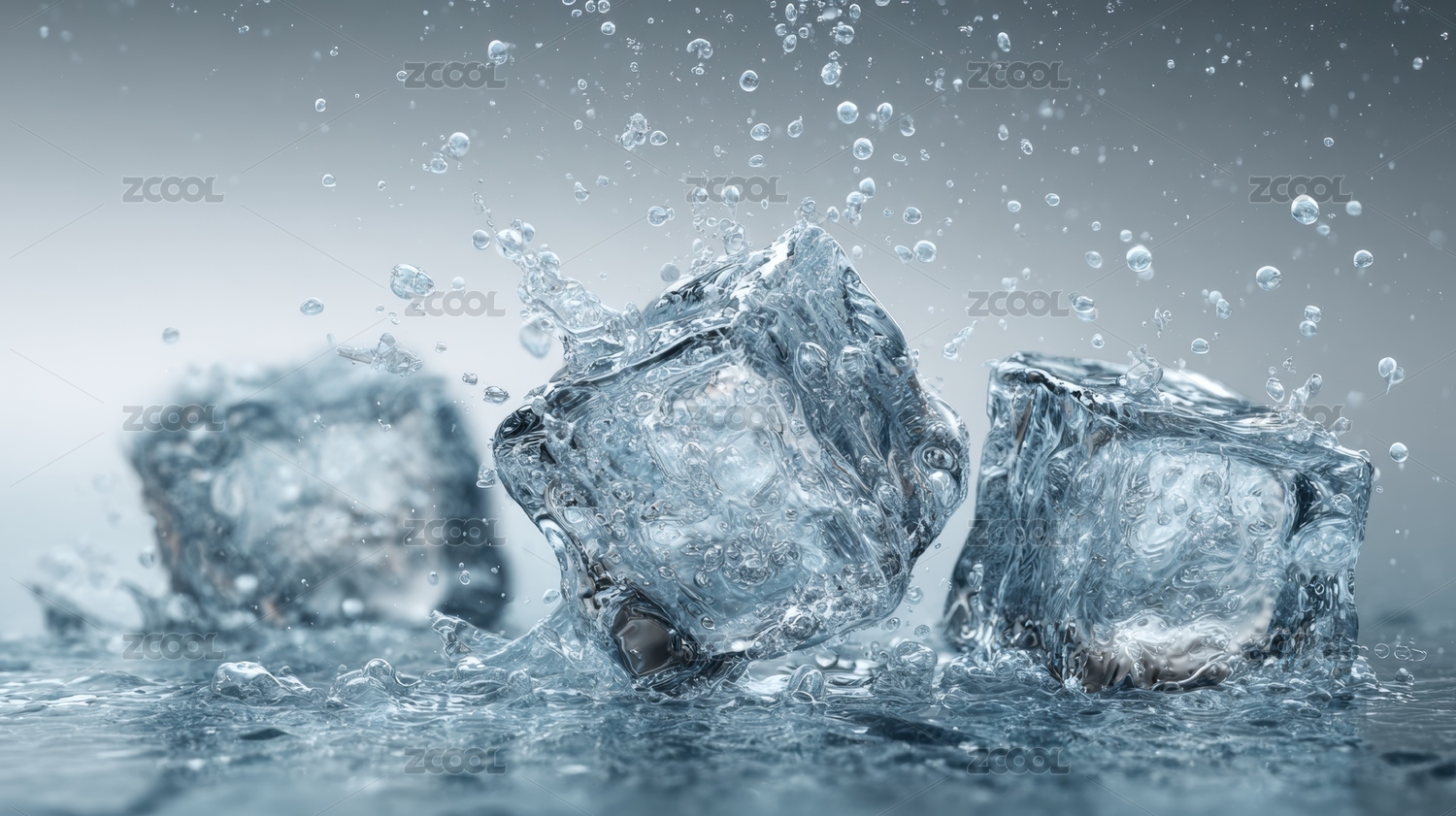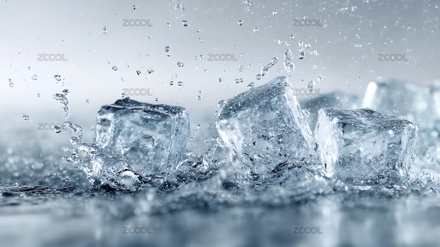 蓝底水花冰块