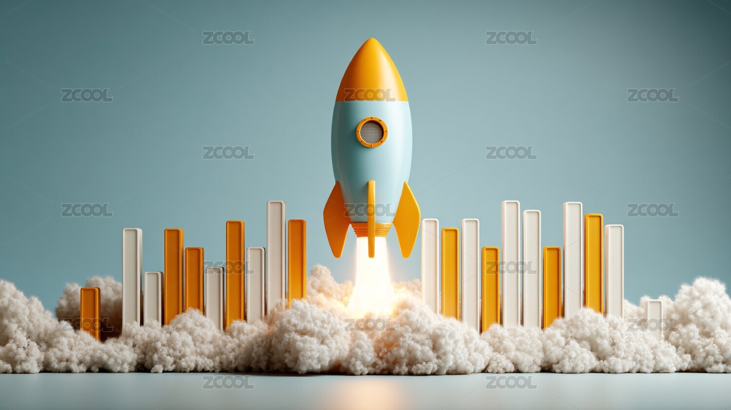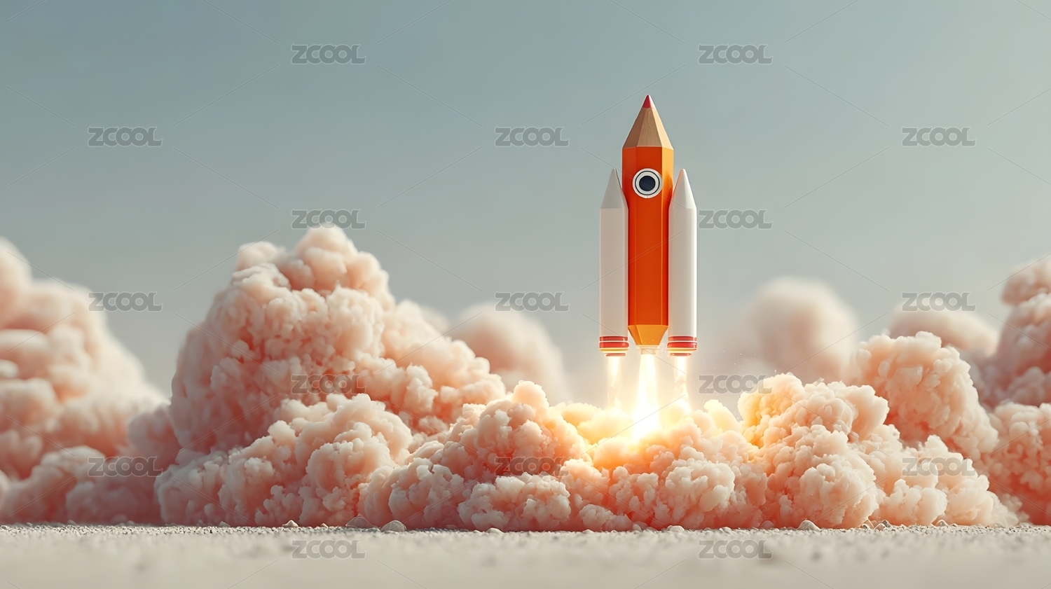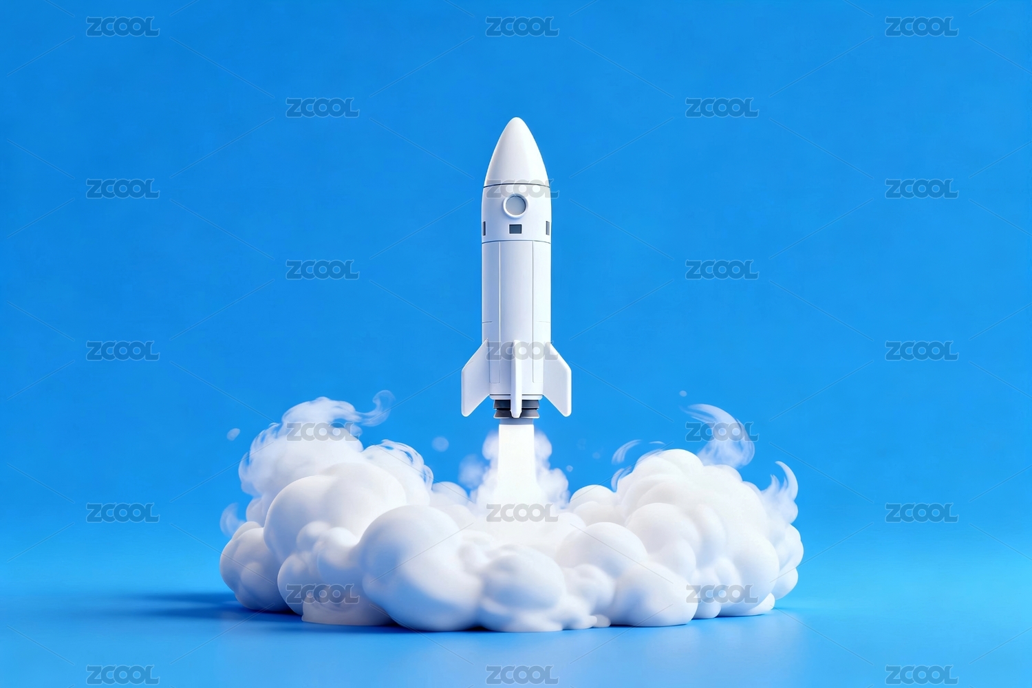 火箭发射电脑屏幕启动飞翔蓝色背景