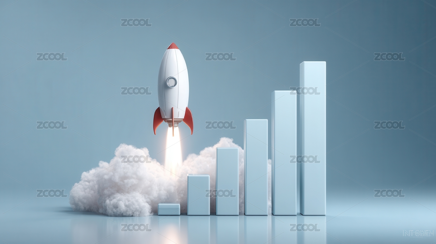 火箭升空与柱状图的创意画面