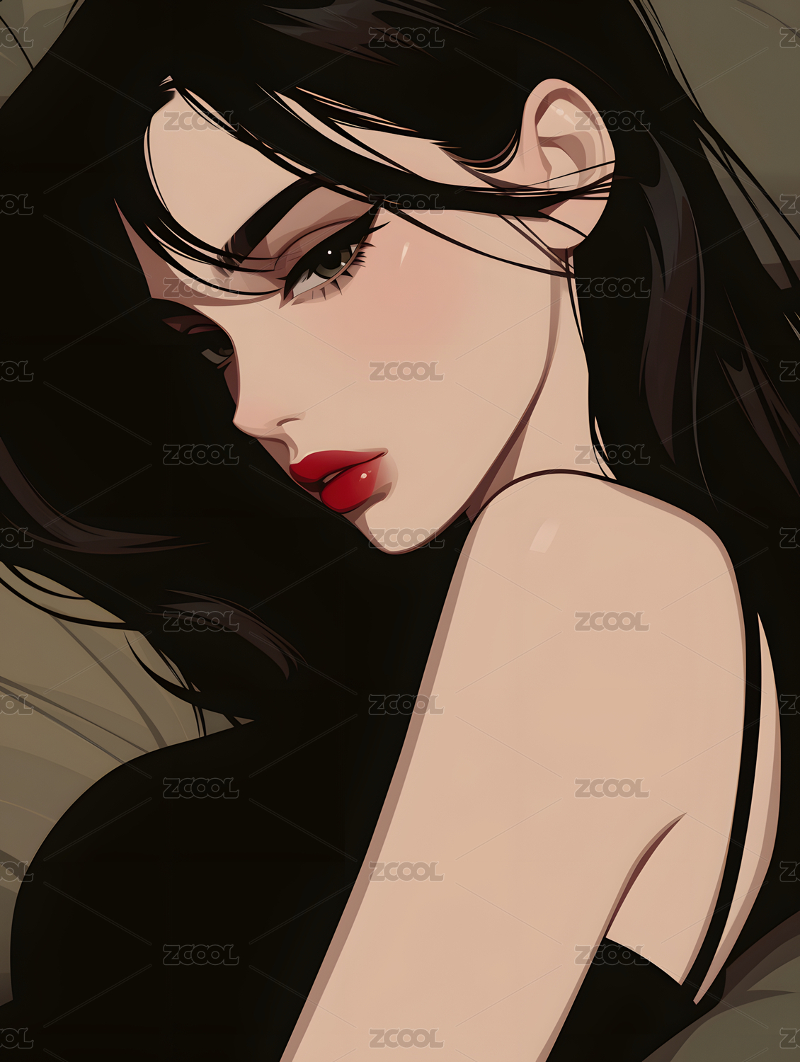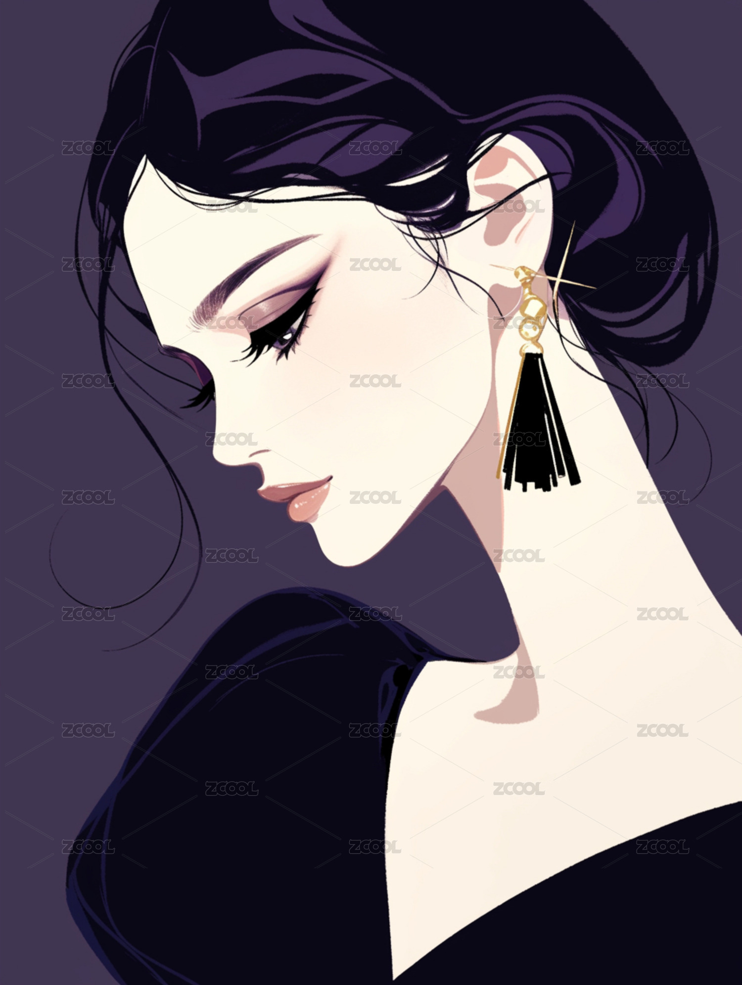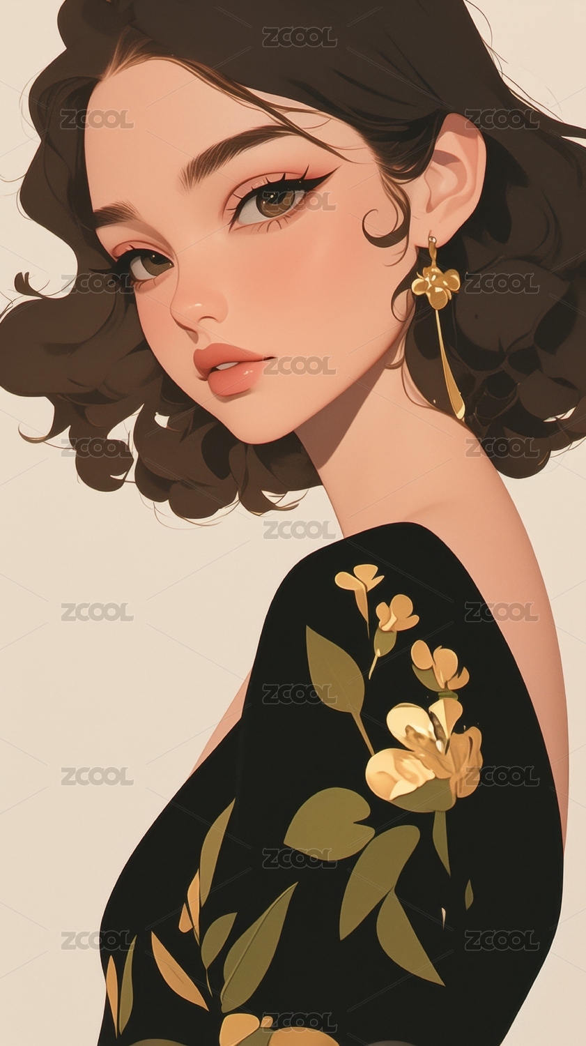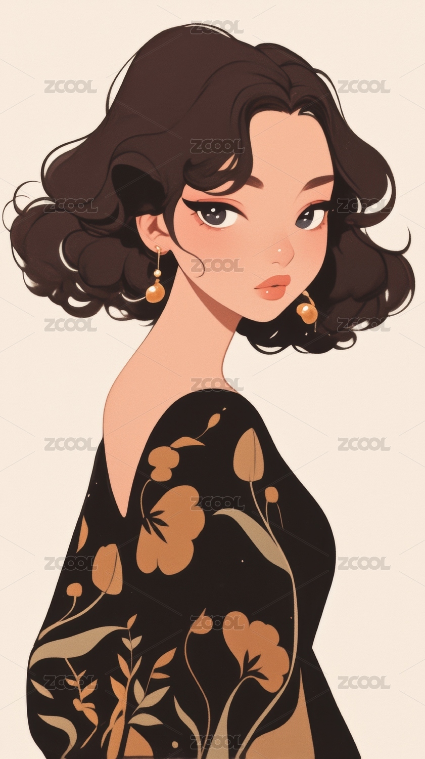 黑发女性肖像插画