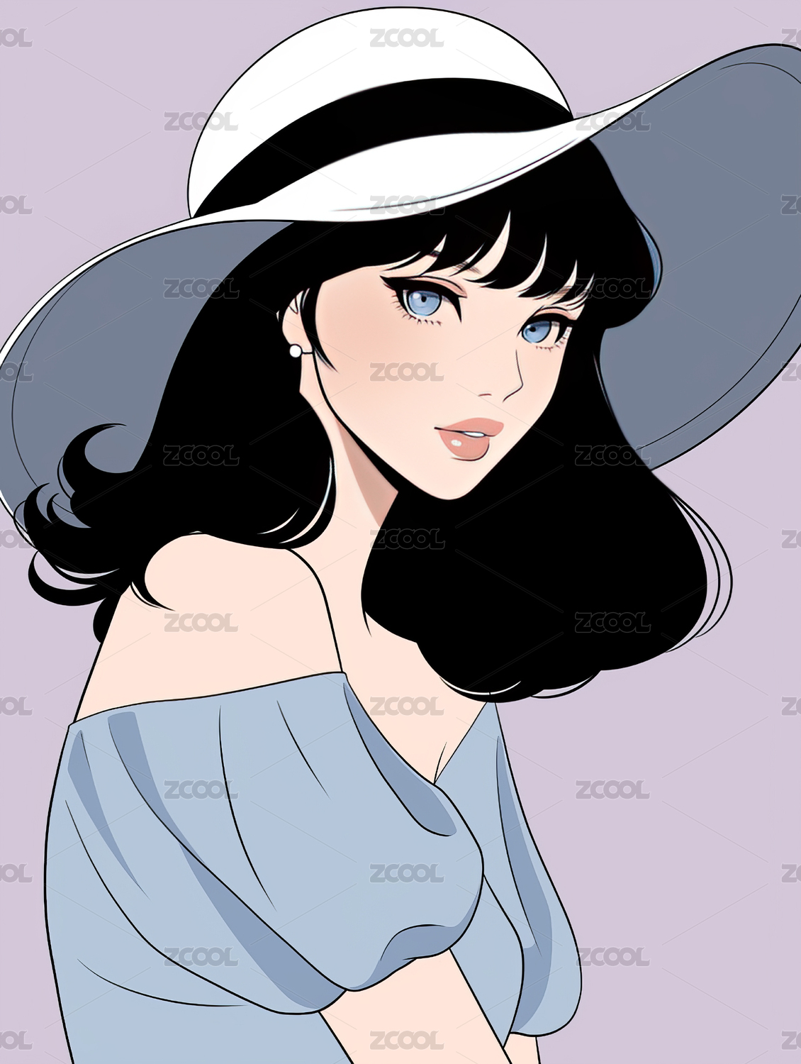 戴黑帽的优雅女性插画