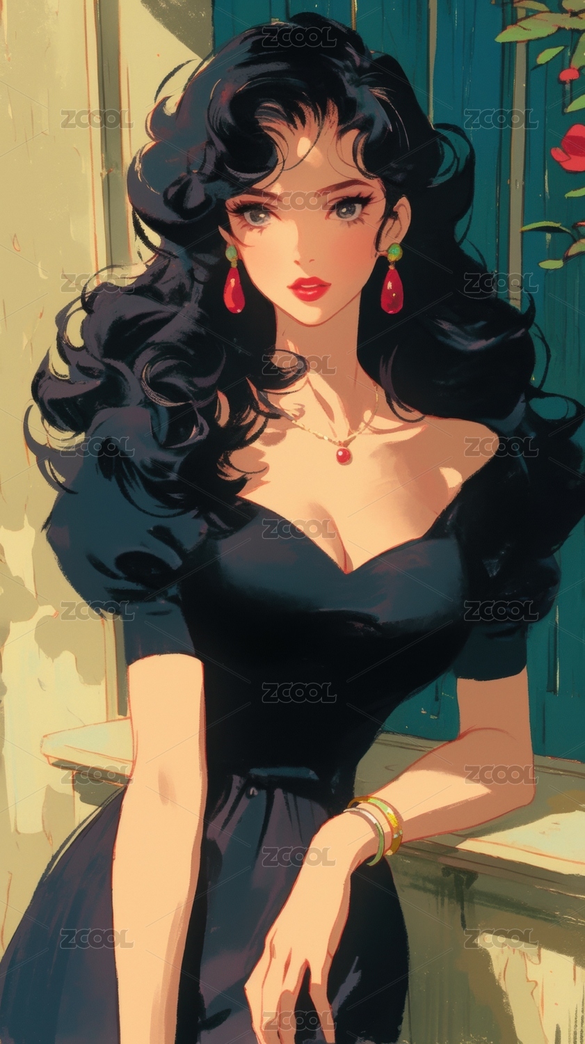 穿着礼服的美女插画
