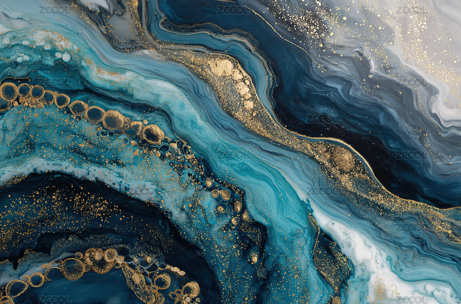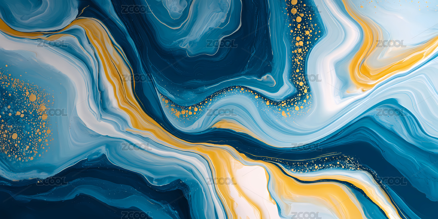蓝金抽象流体艺术