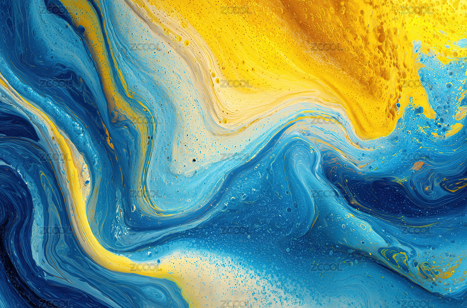 蓝黄交织的抽象流体图案