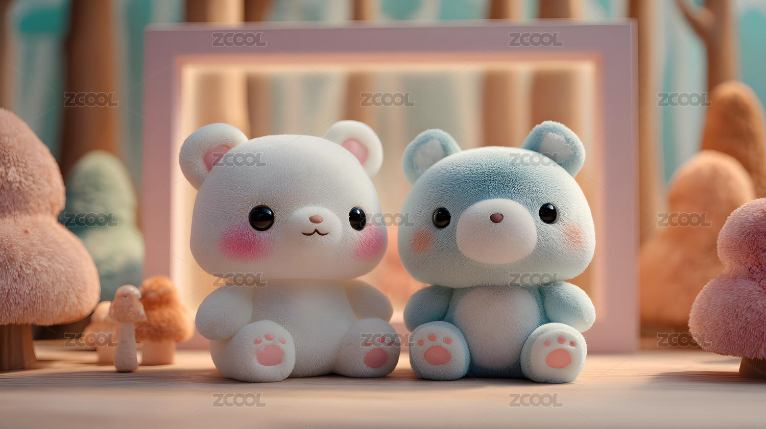 蓝色,背景,壁纸,可爱,树木,治愈,卡通,玩偶,白色,温馨