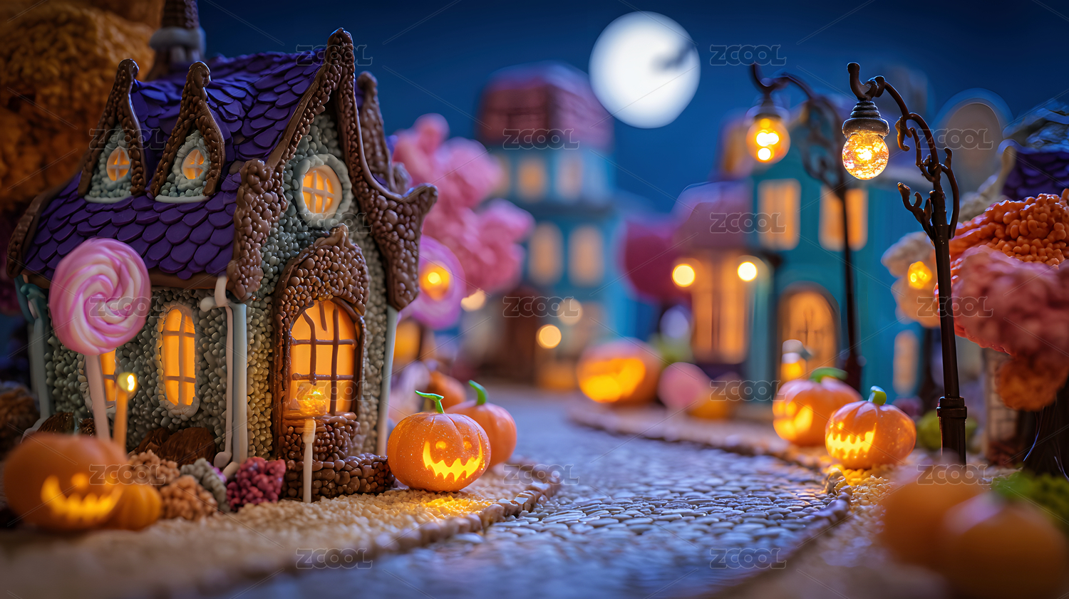 杰克灯笼和鬼屋的幽灵般的万圣节场景