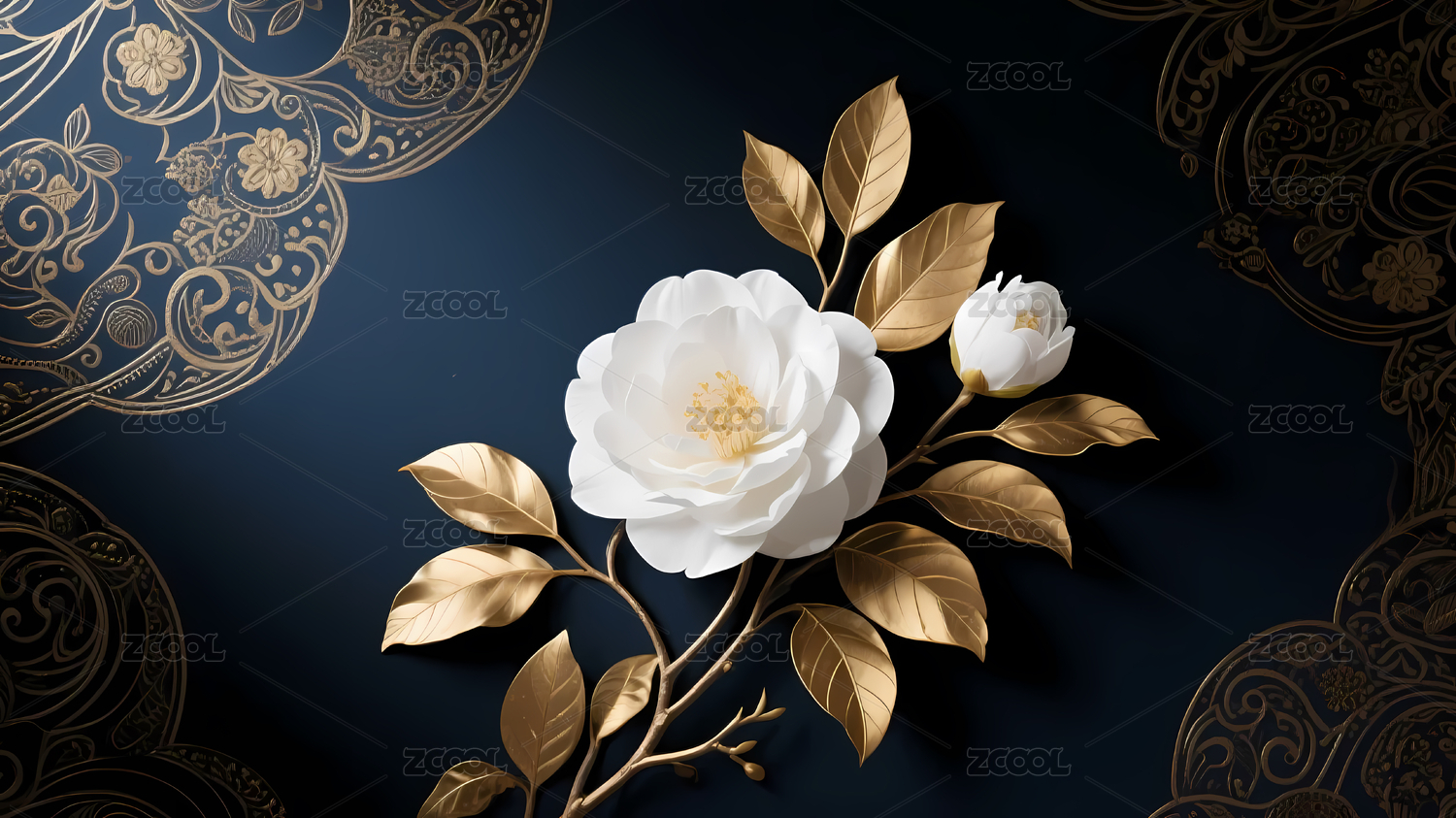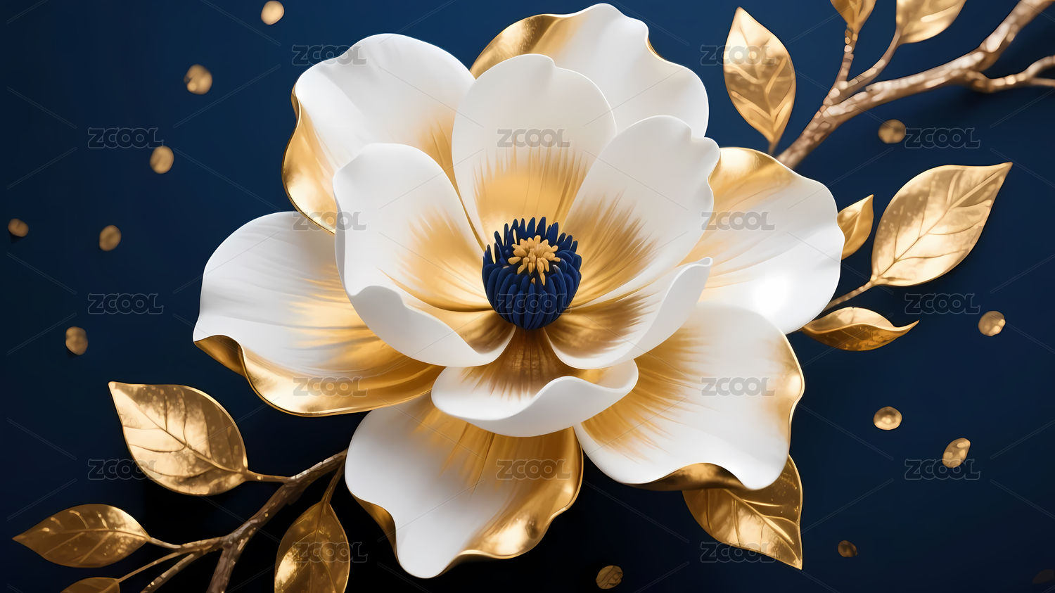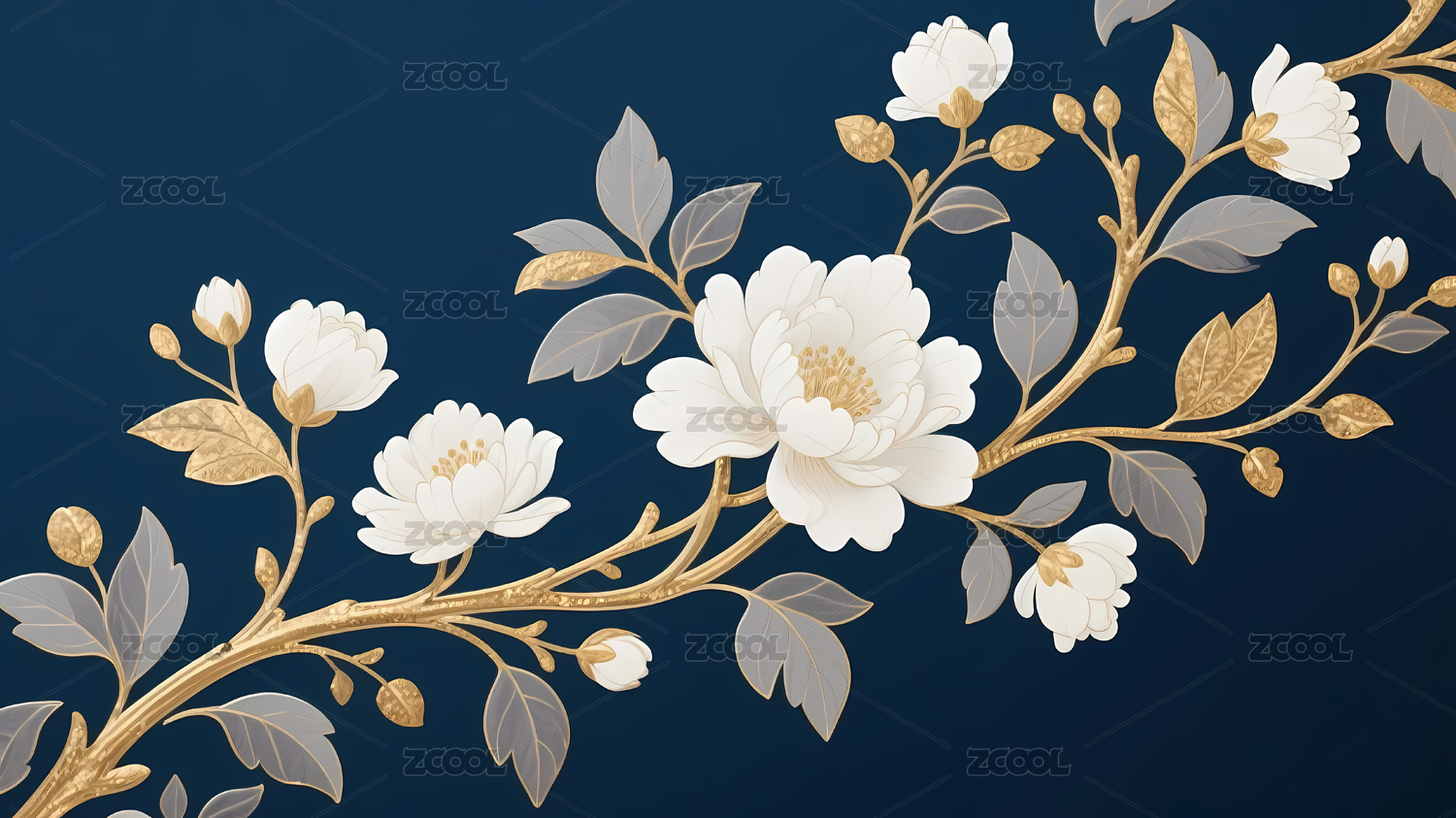 金色,花朵,背景,白色,枝条,深蓝,优雅,华丽,花瓣,圆点