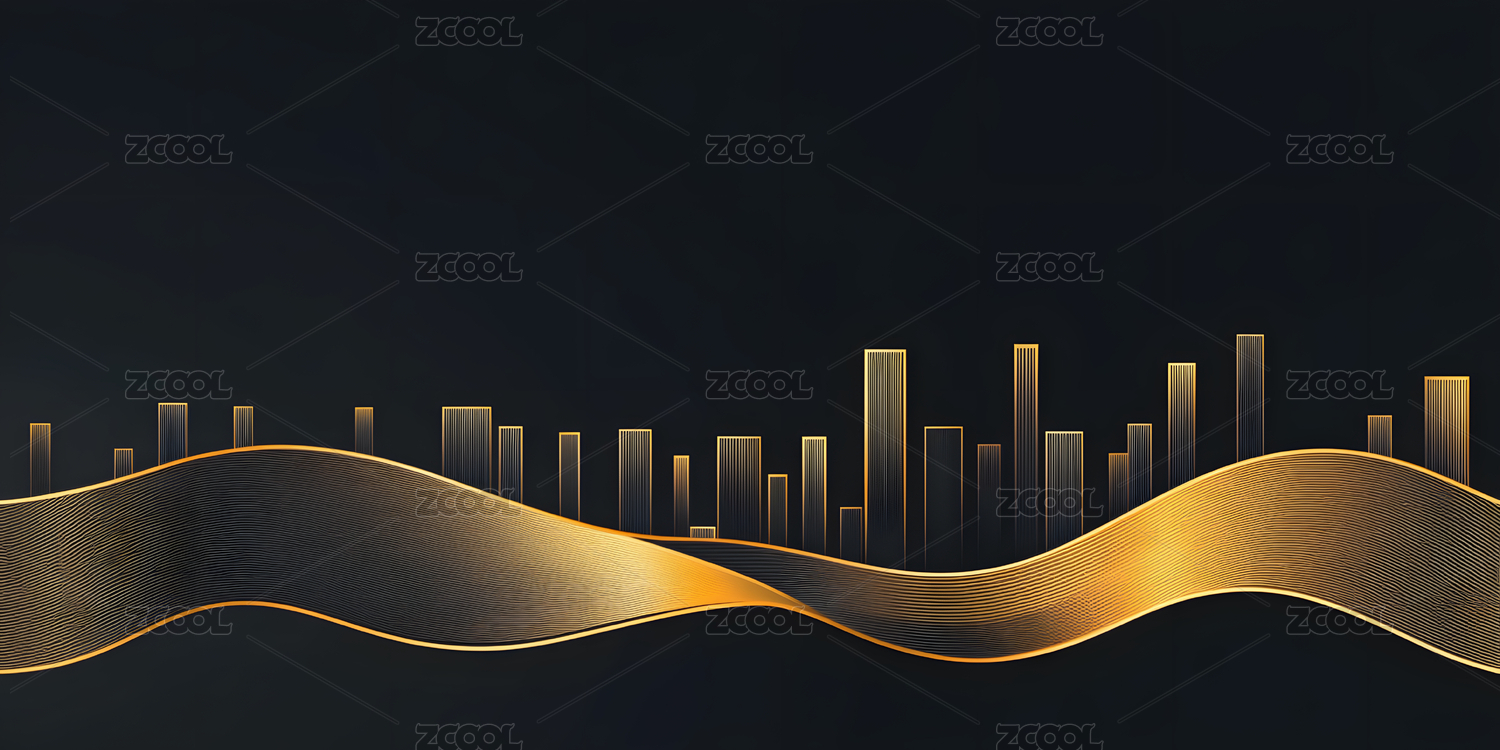 金融,抽象,背景,黑色,简约,金色,城市,现代,线条,剪影