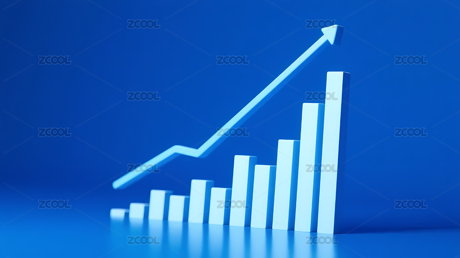 蓝色渐变玻璃质感金融柱状图增长箭头背景