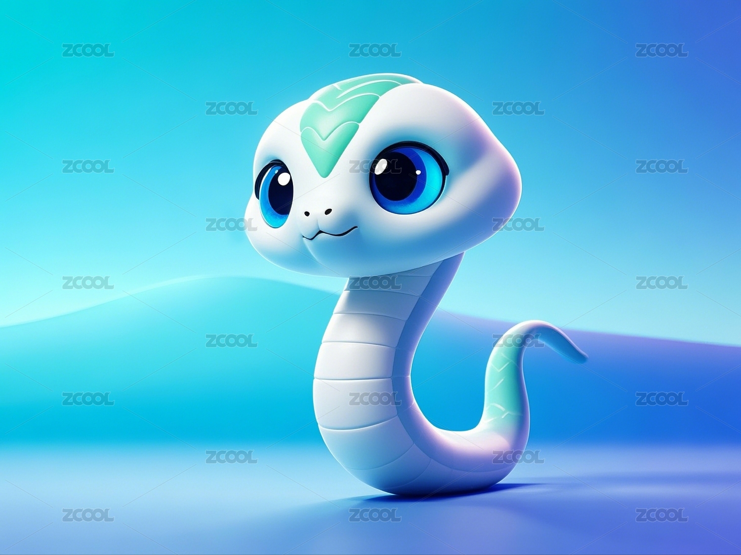 可爱的3D癸巳年蛇年小蛇卡通插画