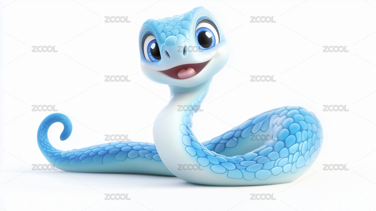 可爱蛇年动物IP的3D插画