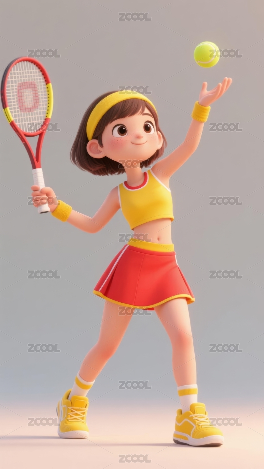 主视觉,场景,卡通,可爱,少女,运动,网球,人物,黄色,服饰