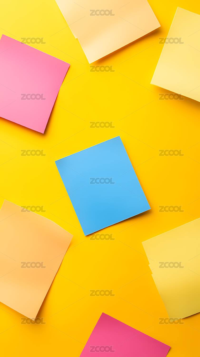 彩色便签纸散落于黄色背景