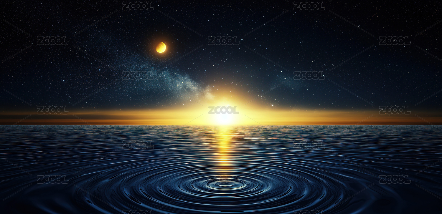 大海,海洋,星空,星辰,日落,海面,晚霞,自然,宇宙,平静