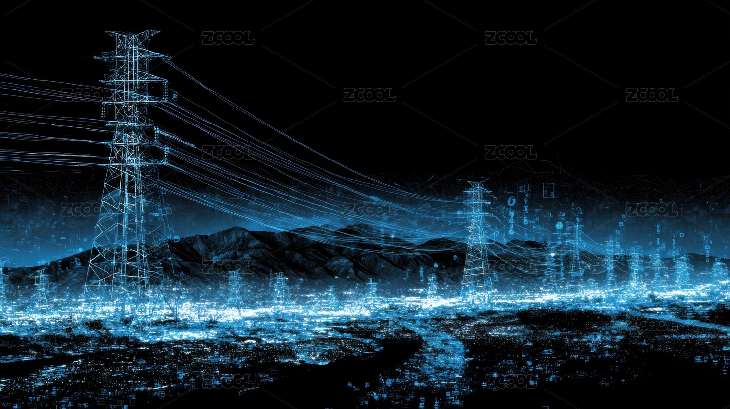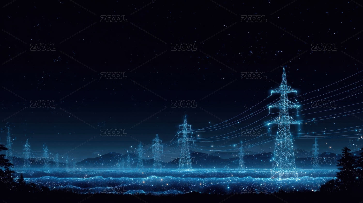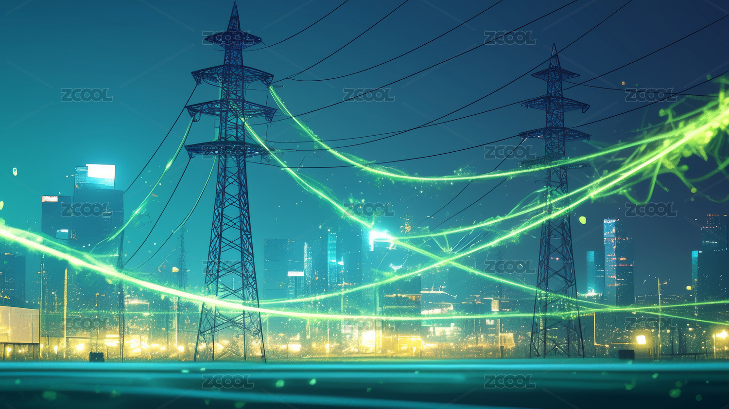 夜景,城市,高楼,输电塔,电线,灯光,都市风光,现代,电网铁塔,夜晚