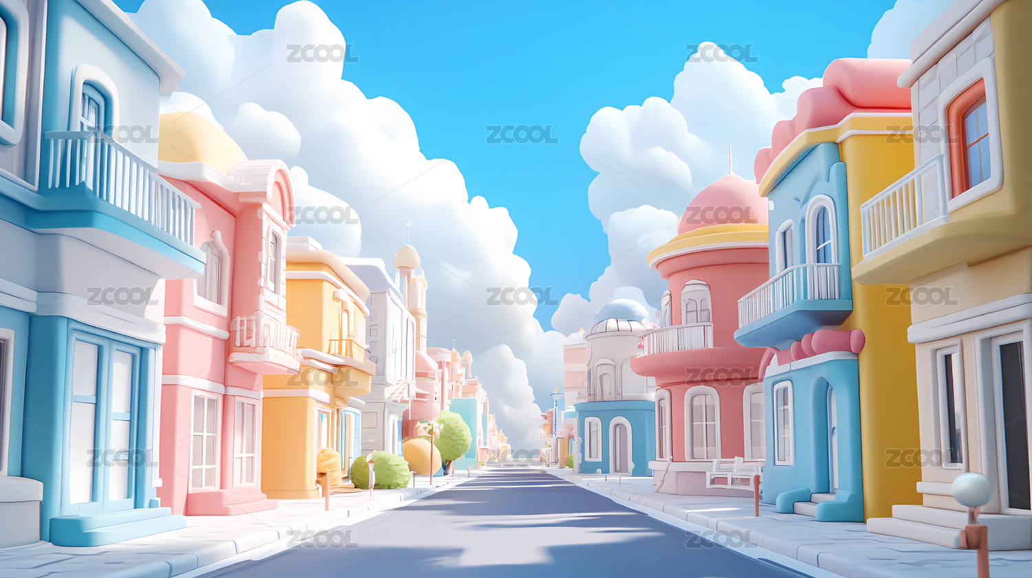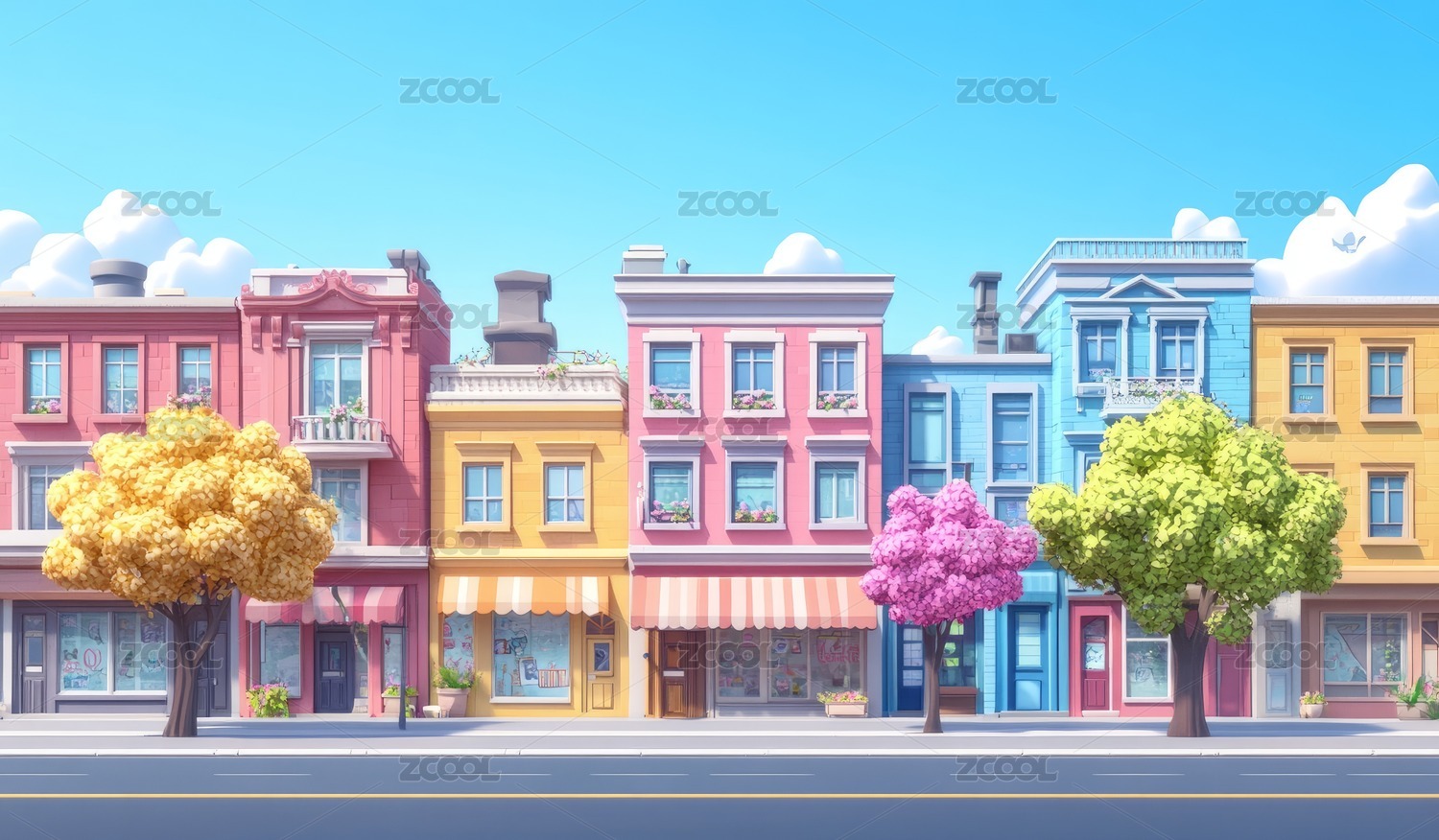 童话,街道,建筑,户外,卡通风格,彩色,店铺,装饰,花卉,卡通