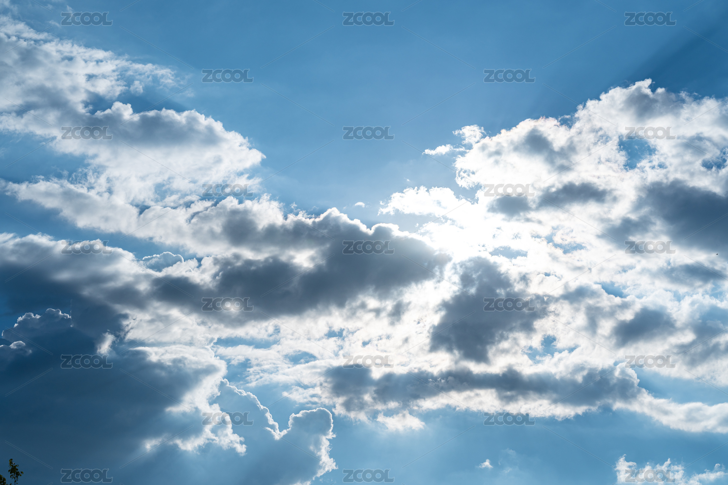 阳光或太阳放射性光芒通过云彩,夕阳天空背景。